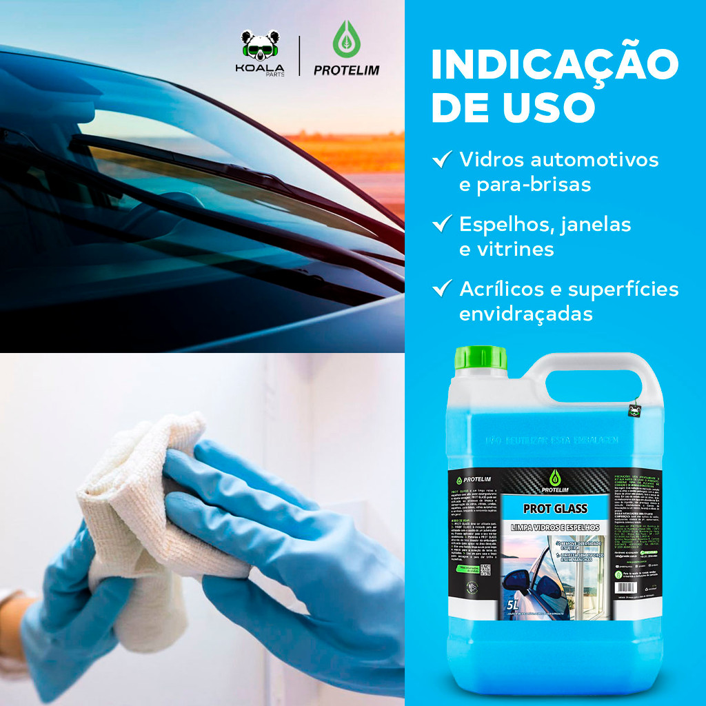 Limpa Vidros e Espelhos Prot Glass 5L Protelim Clareza, brilho e transparência inigualável. O Prot Glass é o limpa-vidros da Protelim que entrega resultado de vitrine com o mínimo de esforço.Ele age rapidamente sobre a superfície, removendo sujeiras, manchas e oleosidade logo na primeira aplicação. Com alto poder desengordurante, secagem rápida e aplicação prática, ele é ideal para quem busca visibilidade perfeita e acabamento profissional, seja em veículos ou superfícies de vidro no geral. Diga adeus às manchas, oleosidades e marcas nos vidros! - Alto poder desengordurante - Secagem ultra rápida - Limpeza fácil e sem esforço - Não deixa manchas ou marcas >> Produto pronto para uso. Não precisa diluir. Indicação de uso: - Vidros automotivos e para-brisas - Espelhos, janelas e vitrines - Acrílicos e superfícies envidraçadas A Protelim é uma marca nacional que atua no ramo da estética automotiva desde 1996, desenvolvendo produtos especializados e de alta qualidade. Feito por quem ama e vive a cultura automotiva, com comprometimento socioambiental e segurança. Protelim - a proteção que brilha! Modo de uso: 1. Agite bem o produto antes de usar. 2. Pulverize diretamente sobre a superfície com auxílio de um aplicador spray. 3. Com um pano limpo e seco, esfregue sobre a superfície para tirar a sujeira e dar brilho. * Usar o produto puro. ** Use EPIs. Enviamos bem embalado, super rápido e com garantia de originalidade. Garanta o seu e confira os outros produtos da nossa Loja Koala Parts. Especificações Técnicas Produto: Prot Glass Marca: Protelim Tipo: Limpa vidros Aplicação: Vidros e espelhos Cor: Azul Diluição: usar puro pH: 10,5 a 11,5 Volume: 5L Conteúdo da Embalagem: 01. Limpa Vidros e Espelhos Prot Glass 5L Protelim