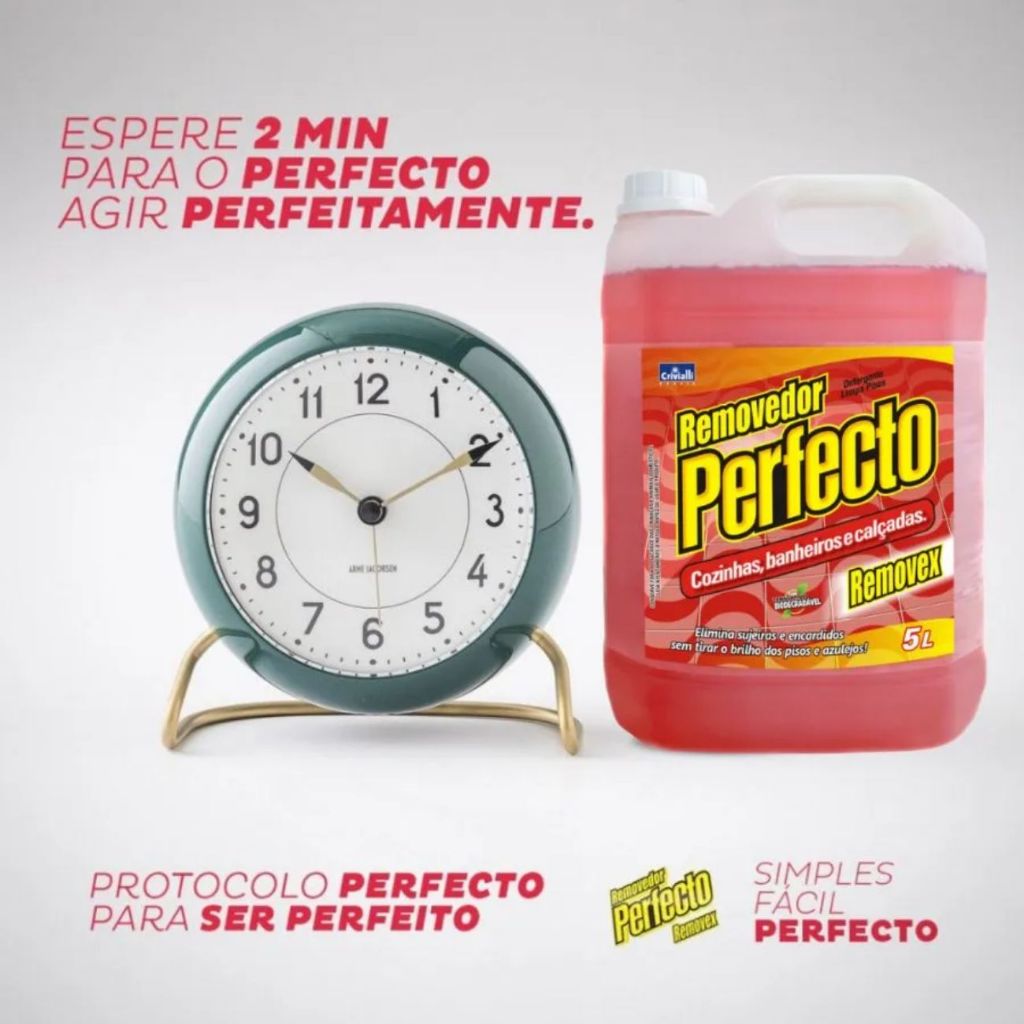Limpador Após Fim De Obra Removedor De Sujeiras 2 Litros ======================================================= Removedor de sujeiras Perfecto é o produto ideal para lavar pisos, azulejos, cerâmicas, ardósia, granilite e calçadas em geral, removendo os encardidos e sujeiras mais difíceis. É recomendado para rejuntes e também nos cantinhos de difícil acesso. NÃO RECOMENDÁVEL USO EM REVESTIMENTOS DE PORCELANATO. O Removedor de sujeiras Pefecto Removex foi desenvolvido para limpar e remover manchas de superfícies como revestimentos, pisos cerâmicos, ardósia e granilite, pode ser usado também para limpar rejuntes. Ideal para limpar a obra após seu término o Removedor Perfecto Removex limpa os cantinhos mais difíceis. Podeser aplicado em Ardósia. Cerâmica. Rejunte. Granilite. Azulejo. Calçadas em geral. Ideal para uso: Após conclusão da obra para limpeza. Doméstico MODO DE USAR Dilua em um balde plástico 1 litro de Removedor de sujeiras Perfecto em 5 litros de água. Molhe a superfície e aplique o produto diluído, deixando agir por 2 minutos; em seguida esfregue com uma vassoura ou escova e enxágue com bastante água. Antes de utilizar em toda a área, faça um teste em uma pequena parte para evitar manchas na superfície. Não deixe o produto secar sobre a superfície, pois poderá manchar. Se a área for grande, aplique por partes. Recomendável o uso de luvas. CUIDADOS EM CASO DE ACIDENTE CONSERVE FORA DO ALCANCE DAS CRIANÇAS E ANIMAIS DOMÉSTICOS. NÃO INGERIR. Evite inalação ou aspiração e contato com os olhos. Evite contato prolongado com a pele. Em caso de contato com os olhos e pele, lave imediatamente com água em abundância. Em caso de ingestão, não provoque vômito e consulte imediatamente o Centro de Intoxicações ou o médico, levando a embalagem ou o rótulo do produto. Depois de utilizar este produto, lave e seque as mãos. Mantenha o produto em sua embalagem original. Não misture com outros produtos químicos. Não reutilize a embalagem para outros fins. Após o uso mantenha a embalagem fechada. Não exponha o produto a luz solar direta. COMPOSIÇÃO Ácido Dodecil Benzeno Sulfônico, Ácido Glicólico, Ácido Oxálico, Agente Controlador de pH, Espessante, Fragrância, Corante e Água. Componentes Ativos: Ácido Dodecil Benzeno Sulfônico e Ácido Glicólico.
