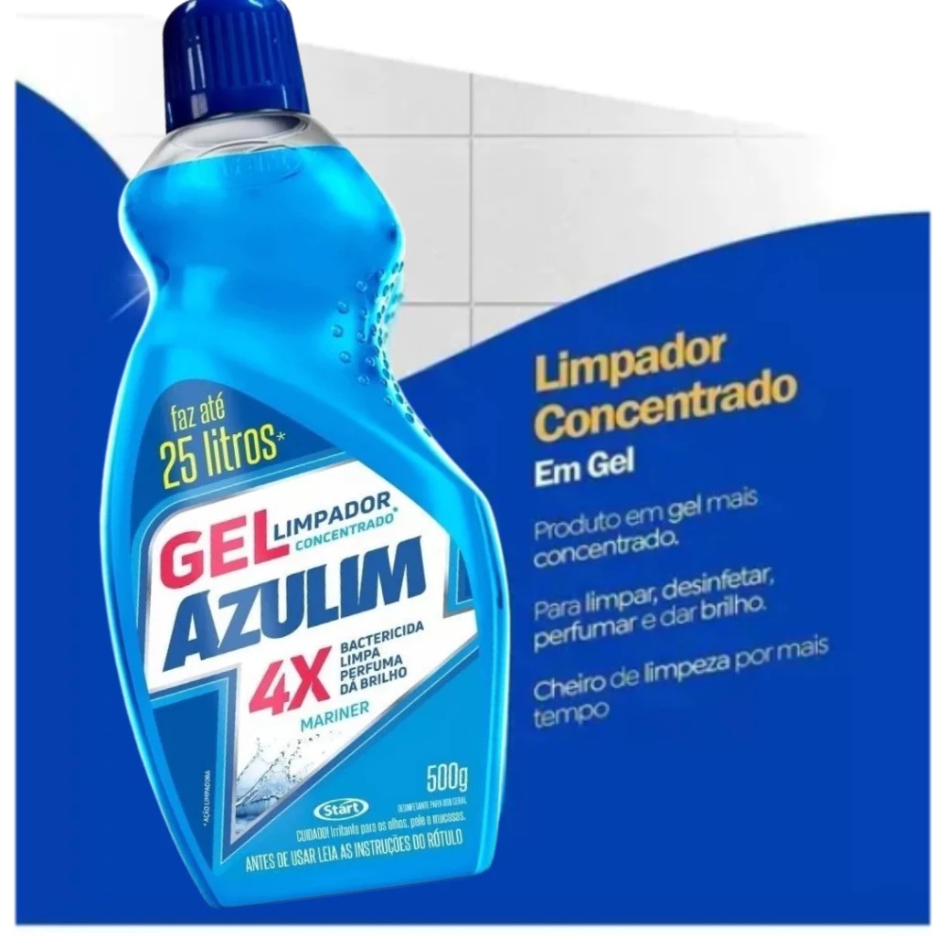 | Limpador Concentrado Gel Azulim 4 em 1 500ml Limpeza - Rende até 25... este produto | R$ 11,99 | — | 4.8/5 | 8 |