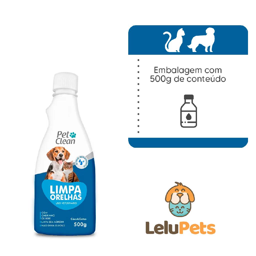 A LeluPets nasceu de uma paixão e dedicação de aproximadamente 20 anos de experiência nessa área tão incrível. Desde o início de nossa história, já são mais de 100 mil clientes atendidos. Estamos aqui determinados em fazer a diferença, democratizando e simplificando o cuidado com o seu pet para oferecer a melhor experiência para você e seu amiguinho. Mantemos nossas orelhas em pé, atentos às novidades do mundo pet para trazê-las até você. Nós somos apaixonados por pets! O seu pet é também da nossa família! Limpador de Orelhas Pet Clean para Cães e Gatos 500 ml O Limpador de Orelha Pet Clean para Cães e Gatos facilita a remoção de ceras e detritos que criam bactérias e germes, sua aplicação é simples já que o produto é em gel, aplique o produto em uma gaze/algodão em pequena quantidade e remova toda sujeira a orelha do pet, use gaze/algodão individuais para cada orelha, evitando transmitir bactérias de uma orelha para outra. - Formulado com ingredientes naturais; - Maior rendimento; - Secagem rápida; - Não oleoso; - Remove ceras; - Antibactericida; - Disponível em embalagem de 500 ml.