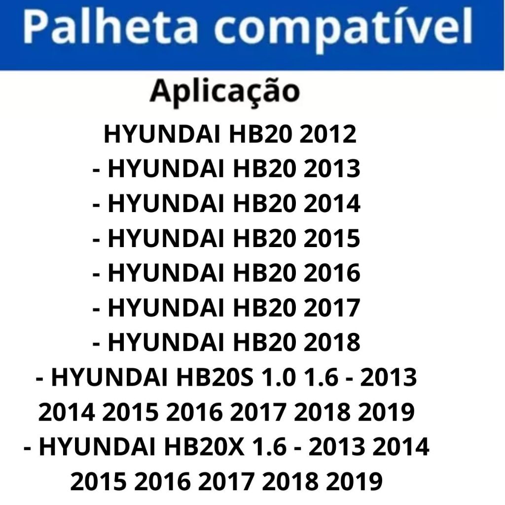 Descrição do Produto: Jogo de Palhetas Dianteiras Bosch Aerofit - Original Conteúdo do Pacote: 1 Palheta Bosch para o lado do motorista (24" / 60 cm) 1 Palheta Bosch para o lado do passageiro (16" / 40 cm) Compatibilidade: Hyundai HB20 (2012-2018) Hyundai HB20S 1.0 e 1.6 (2013-2019) Hyundai HB20X 1.6 (2013-2019) Encaixe: Gancho Descrição: Garanta uma visão clara e segura com as palhetas Bosch Aerofit. Projetadas para oferecer máxima eficiência em todas as condições climáticas, estas palhetas são um produto original Bosch, com nota fiscal inclusa. Características: Encaixe Gancho: Instalação rápida e segura. Durabilidade e Eficiência: Alta performance comprovada. Embalagem Moderna: Design atualizado. Tratamento de Grafite: Limpeza suave e eficaz. Estrutura Robusta: Estabilidade garantida em todas as condições. Recursos Destacados: Tecnologia Avançada: Adaptada para conexões especiais. Borracha Power Protection Plus: Limpeza silenciosa e eficiente. Lâmina de Aço Evodium: Pré-tensionada para ajuste perfeito ao para-brisa. Construção Durável: Desempenho confiável em qualquer clima. Instalação Simples: Facilidade e rapidez na colocação. Substituição Recomendada: Verifique regularmente o estado das palhetas e do para-brisa. Inclui dicas de manutenção para prolongar a vida útil das palhetas. Importante: Substitua as palhetas pelo menos uma vez por ano para garantir o desempenho ideal. Dúvidas? Consulte o campo de perguntas do anúncio para verificar a compatibilidade com seu veículo. Adquira já suas Palhetas Bosch Aerofit e mantenha sua visão clara e segura em qualquer condição.