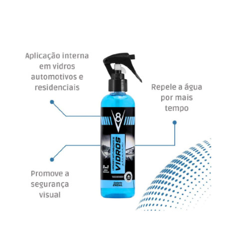 Limpador e Anti-Embaçante de Vidros Automotivo Premium 240ml - V8