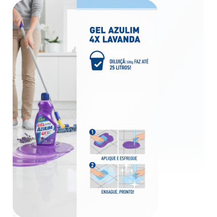 💜 Limpador Gel Azulim Lavanda 500g: Brilho e Perfume para sua Casa! 💜 ✨ Limpeza Inteligente e Brilho Sem Esforço! Descubra a eficiência do Limpador Gel Azulim, o produto ideal para a limpeza diária que combina o poder desengordurante do gel com a fragrância relaxante da lavanda. Sua fórmula concentrada adere melhor às superfícies, garantindo uma ação mais eficaz contra a sujeira e deixando um brilho impecável em todos os cantos. Mantenha sua casa limpa, protegida e cheirosa! 🔎 Características do Produto: * Produto: Limpador Multiuso Concentrado em Gel * Marca: Azulim (Start Química) * Conteúdo: 500g (Frasco) * Ação: Desengordurante, Limpador e Aromatizante * Fragrância: Lavanda (Aroma Floral Suave) * Textura: Gel Viscoso * Aplicação: Uso em cozinhas, banheiros, pisos, azulejos e superfícies laváveis * Modo de Uso: Pode ser usado puro ou diluído * Composição: Tensoativos, agentes de limpeza, fragrância, corante e veículo 🌟 Benefícios que Facilitam sua Limpeza: * Fórmula em Gel: Maior aderência e tempo de contato com a sujeira, potencializando a limpeza. 💪 * Alto Rendimento: Por ser concentrado, uma pequena quantidade garante uma limpeza eficaz. 💰 * Aroma Relaxante: Deixa um perfume suave e duradouro de lavanda no ambiente. 👃 * Multiuso Eficaz: Limpa gordura da cozinha e sujeira do banheiro com a mesma eficiência. 🛁🍳 * Brilho e Proteção: Limpa sem deixar resíduos e ajuda a manter o brilho natural das superfícies. ✨ ❓ Perguntas Comuns para Tirar Dúvidas: ❔O Limpador Gel Azulim Lavanda serve para limpar rejuntes? R: Sim, por sua consistência em gel, ele adere bem aos rejuntes, tornando a remoção de sujeira e mofo mais fácil com o auxílio de uma escova. ❔Posso usá-lo em pisos de madeira ou laminados? R: Não é recomendado para pisos de madeira não selados ou laminados, pois o excesso de água ou a composição química pode danificar o acabamento. Ideal para pisos frios e superfícies laváveis. ❔Qual a principal vantagem de ser em gel em vez de líquido? R: A consistência em gel permite que o produto fique mais tempo em contato com a sujeira nas superfícies verticais (como azulejos), aumentando seu poder de ação desengordurante. ❔Ele precisa ser enxaguado após o uso? R: Para a limpeza geral diluída, um pano úmido pode ser suficiente. Para o uso puro em sujeira pesada, o enxágue é recomendado para remover totalmente o produto e o resíduo de sujeira. ❔Existe o risco de manchar superfícies coloridas ou escuras? R: Não deve manchar superfícies comuns. No entanto, em superfícies delicadas ou não usuais, sempre faça um teste em uma área escondida antes de usar o produto em toda a área.