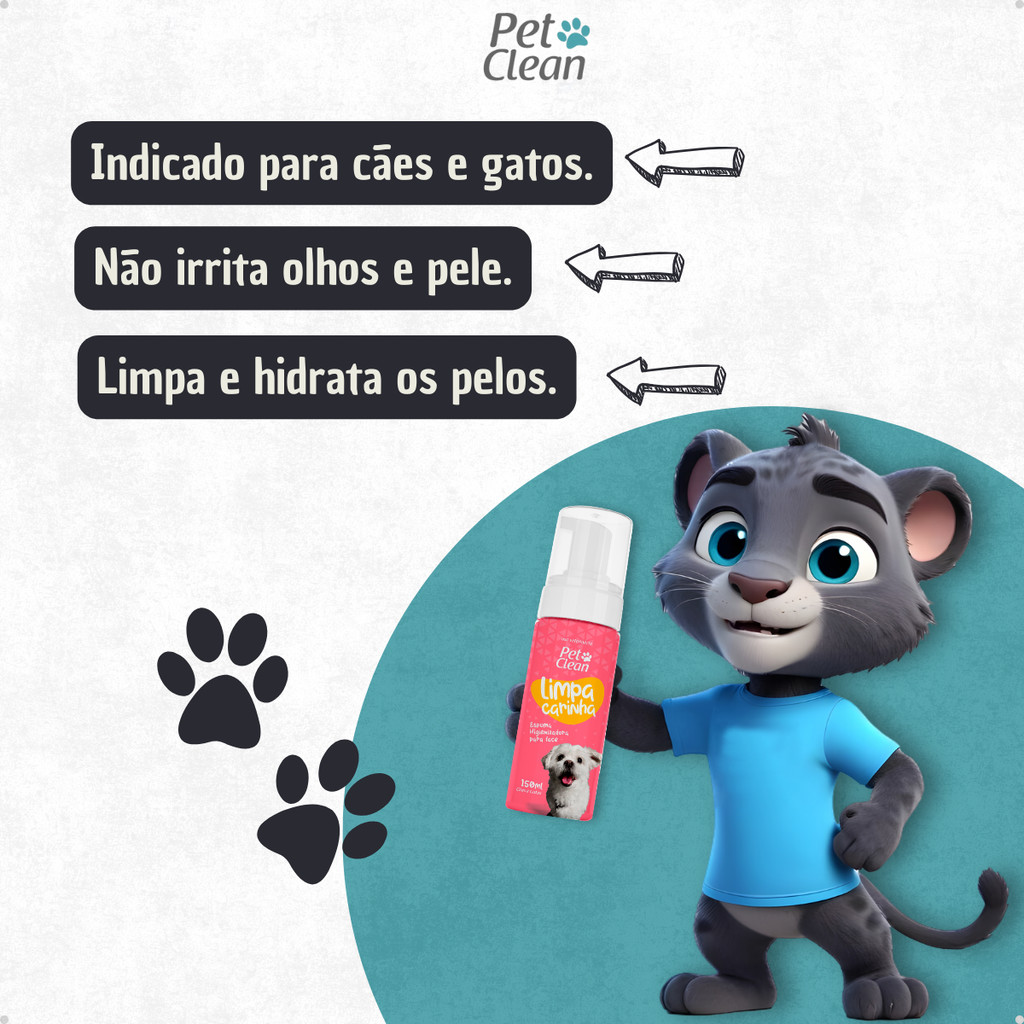 PERGUNTAS FREQUENTES POSSO UTILIZAR EM FILHOTES? É indicado para todas as idades, inclusive filhotes acima de 3 meses. OS PRODUTOS SÃO APLICADOS DA MESMA FORMA PARA CÃES E GATOS? Sim! A aplicação é a mesma para ambos animais. O QUE FAZER SE OS PRODUTOS TOCAREM OS OLHOS? Se vier a tocar os olhos, recomendamos que enxague com água em abundância. OS PRODUTOS SÃO HIPOALÉRGICOS? Não, apesar de não possuirem componentes nocivos e tóxicos aos animais, o produto não é especial para cães alérgicos. O QUE ACONTECE SE O CACHORRO OU GATO LAMBER O PRODUTO? Não indicamos o consumo do produto para nenhum animal. Porém, eventualmente caso o animal venha a ingerir o produto, não haverá nenhum risco para a saúde do mesmo. Mas, caso algum comportamento diferente ocorra, indicamos a consulta de um médico veterinário de sua confiança. Faça a limpeza e higienização da carinha do seu pet! Você sabia que não limpar a carinha de cães e gatos trazem riscos a longo prazo? Alergias, infecções, inflamações e outros problemas podem ser causados pelo excesso de cera. Para a limpeza correta da carinha de cães e gatos, é necessário um bom limpador! O Limpador de Carinhas para Cães e Gatos da Pet Clean é uma loção elaborada especialmente para facilitar a remoção de lágrimas e resíduos da face do pet. Simples, prático e eficiente, o limpador de carinha garante a limpeza e higienização total da carinha do seu amiguinho sem machucá-lo! BENEFÍCIOS DO LIMPADOR DE CARINHA PET CLEAN: -Limpeza e remoção de residuos da região facial. -Neutraliza o odor. -PH balanceado. -Não agride o animal. -Indicado para cães e gatos. INFORMAÇÕES TÉCNICAS: Produto: Limpador de Carinhas para Cães e Gatos Pet Clean - 150ml Marca: Pet Clean Tipo: Farmácia Animal: Cachorros e Gatos Porte: Pequeno, Médio e Grande. Raça Específica: Não Sexo Específico: Não Itens Inclusos: Limpador de Carinhas para Cães e Gatos Pet Clean - 150ml Apresentação: Frasco em Plástico Composição: Cocoamidopropibetaína, Lauril sarcosinato de sódio, Extrato de camomila, Manteiga de murumuru, Fragância e veículo Q.S.P. MODO DE USAR Aplique o produto diretamente no pelo ou pele do pet e espalhe por toda a área desejada e com o auxilio de um pano limpo e seco, retire a sujidades secas e úmidas, retire o excesso do produto. Não é necessário enxague. Uso externo. PRECAUÇÕES Uso externo. Evite contato com os olhos e mucosas do animal. Manter em local fresco e seco, fora do alcance de crianças e animais domésticos. Caso houver a constatação de hipersensibilidade, suspender o uso. Não utilizar em filhotes com menos de 2 meses de vida. Manter longe de alimentos, medicamentos e produtos domésticos ou de higiene pessoal.