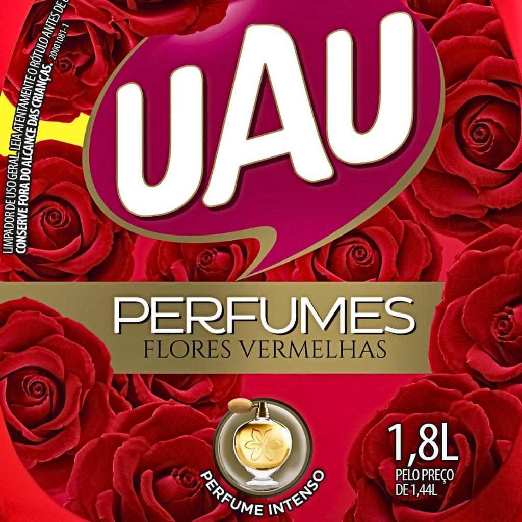 Limpador de uso geral com perfume prolongado e sensação de refrescância, conforto e bem-estar por até 15h Uau Perfumes é um limpador com fragrância inspirada em perfumaria fina internacional, que te salva na hora da correria ou quando você vai receber uma visita inesperada. Você quer deixar seus dias mais intensos com o fogo da paixão aceso? Então invista no aroma Flores Vermelhas & Sedução que incendeia o ambiente e os sentidos. Dilua 4 tampas em 5 litros de água, molhe o pano, torça e passe no piso lavável. Agora é só você curtir a sensação de dever cumprido! Dica: antes de usar, faça um teste em uma pequena área escondida para ter certeza que não mancha. UAU Perfumes é indicado para proporcionar o cheirinho de limpeza em superfícies laváveis, como pisos, azulejos, pias e bancadas da cozinha. Use também para dar aquele toque final ou fazer a manutenção da limpeza na sala, quarto, sala de jantar, lavanderia, área de churrasco e banheiro.