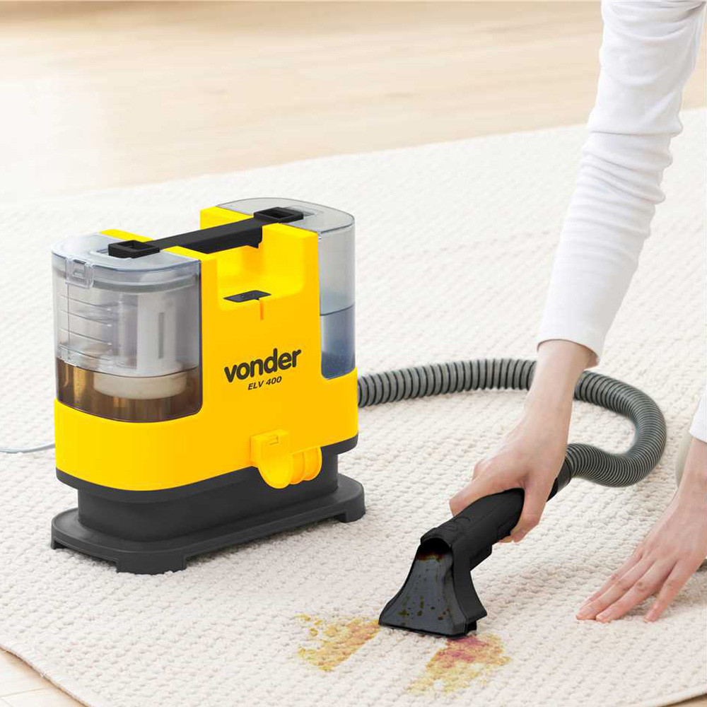 Você estará comprando: 01 Extratora Portátil EL V400 Vonder 01 Limpa Extra 1 Litro Informações da Extratora Portátil EL V400 Vonder Extratora compacta, prática e portátil, possibilitando o fácil transporte nos trabalhos realizados. Possui reservatório para água limpa/produto de limpeza com capacidade total de 1,3 L e também para água suja com capacidade total de 500 ml, acompanha ainda bocal 3 em 1: pulveriza, esfrega e extrai até as camadas mais profundas de sujeira. Além de motor com dupla isolação, garantindo maior segurança ao operador. Indicado para aspirar líquidos. Indicada para limpeza de pisos, estofados, sofás, carpetes, cadeiras, entre outros. Pulveriza a água/produto de limpeza e succiona novamente com a sujeira localizada no material a ser limpo. Informações Técnicas: Modelo: ELV400 Marca: Vonder Tipo do motor: Universal Potência: 400W Tensão: 127v ou 220v (Escolher conforme disponibilidade) Frequência: 50Hz / 60Hz Função Extratora: Sim Função Aspirador: Não Capacidade do reservatório: 500 ml Capacidade do reservatório de água limpa/produto de limpeza: 1,3 litro Tipo do filtro de ar: Espuma Aspiração: 36 m³/h Vácuo: 90 mbar Vazão de Aspiração: 10 L/s Índice de Proteção: IPX4 Classe de Isolação: 1 Comprimento da mangueira: 1,5 metros Comprimento do cabo elétrico: 3,3 metros Dimensões Aproximada (C x L x A): 285x152x265mm Nível de ruído: 84 dB(A) Massa aproximada (peso): 4 kg Garantia: 90 dias + Garantia contratual: 9 meses Informações do Produto Limpa e Extrai Indicado para a limpeza de sofás, cadeiras, poltronas, estofados automotivos, colchões, tapetes e carpetes. Possui pH neutro que preserva as fibras do tecido e as peças da extratora, evitando a corrosão e aumentando sua vida útil. Seguro para ambientes com crianças e pet. Fragrância: Cereja e Avelã MODO DE DILUIÇÃO: - GRAU DE SUJIDADE ALTA: 35 ml produto + 965 ml de água - GRAU DE SUJIDADE MÉDIA: 25 ml do produto + 975 ml de água - GRAU DE SUJIDADE BAIXA: 15 ml de produto + 985 ml de água