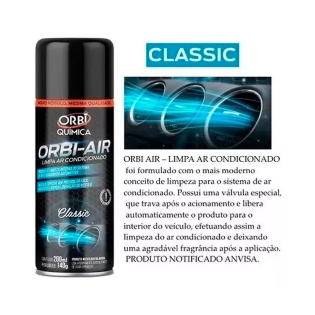 Ar puro, carro renovado! Com o Limpa Ar-Condicionado Orbi, você garante uma limpeza profunda e eficaz do sistema de ventilação do seu veículo, eliminando odores e impurezas com praticidade. Escolha sua fragrância favorita e transforme a experiência dentro do carro com um aroma agradável e duradouro. Disponível em 6 versões: -Carro Novo -Classic -Lavanda -Aqcua -Vanilha -Summer Produto notificado pela ANVISA | Fácil aplicação com válvula de travamento automático. 1 unidade – você escolhe a fragrância!