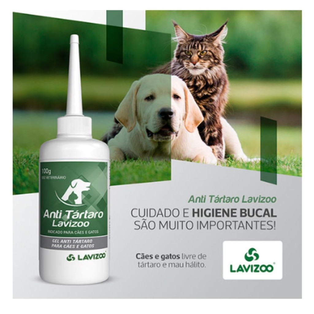 A MANADA ANIMAL é um marketplace de produtos veterinários. É a escolha certa para tutores que prezam pela qualidade dos produtos que seu animal necessita. Tudo com o suporte de uma equipe de veterinários e gestores com mais de 10 anos de experiência no mercado. Fique tranquilo, todos os nossos produtos são originais, adquiridos através de distribuidores credenciados! Ah, e todas as vendas acompanham nota fiscal! MANADA ANIMAL, Tranquilidade pra você, cuidado para ele! ______________________________________ Anti Tártaro Lavizoo O Anti Tártaro Lavizoo foi desenvolvido para fornecer aos cães e gatos uma higiene bucal diária. O Anti Tártaro Lavizoo proporciona gengivas saudáveis, além de auxiliar na eliminação do mau hálito, placa e cálculo dentário. É a opção confiável para cuidar da saúde bucal do seu pet, além de proporcionar um agradável aroma de menta. Indicação de uso O Anti Tártaro Lavizoo é indicado para cães e gatos de todas as idades. Diga adeus ao mau hálito do seu animal de estimação e previna problemas como gengivite, tártaro, queda dos dentes, sangramento oral e quadros inflamatórios em geral. A saúde bucal é essencial para o bem estar e qualidade de vida dos pets. Use o Anti Tártaro Lavizoo e surpreenda-se com os resultados! Modo de uso Aplique o anti tártaro diretamente nos dentes que possuam placa ou tártaro. Aplique diariamente à noite. Para obtenção do máximo efeito, retire a comida e a água do seu animal por 30 minutos, antes e após a aplicação do gel. A escovação dentária pode auxiliar a remoção da placa e cálculo dentário amolecidos. Composição básica/Fórmula Contém: extrato de chá verde, óleo de aloe vera e óleo essencial de menta.