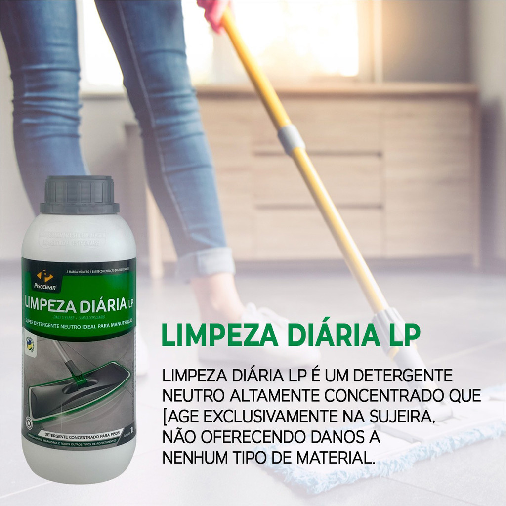 LIMPEZA PESADA LP | LIMPEZA DIÁRIA LP LIMPEZA DIÁRIA LP Super detergente neutro, ideal para manutenção Nenhum supermercado tem produtos para a correta manutenção de porcelanatos. Todos os produtos disponíveis, uns mais outros menos, são prejudiciais para seu revestimento. Limpeza Diária LP é um detergente neutro altamente concentrado que age exclusivamente na sujeira, não oferecendo danos a nenhum tipo de material. Produto perfumado que limpa com eficiência e muita segurança, tanto para o piso quanto para quem o aplica. Use-o em mesas, bancadas, pisos, sem restrições. Oonde usar Ambientes: Áreas internas, áreas externas. Revestimentos: Mármores, Granitos, outras rochas, cerâmicas, Porcelanatos, Laminados, entre outros. Obs.: O produto pode ser utilizado sobre pisos tratados ou sem tratamentos. Não age sobre ceras ou impermeabilizantes, apenas sobre a sujeira. Resolve: Sujeiras diversas. Rendimento Tipo de limpeza Pesada - 1:2 Até 40m² Média - 1:8 Até 120m² Leve - 1:50 Até 300m² LIMPEZA PESADA LP Removedor de sujeiras difíceis e ceras Limpeza Pesada LP é o produto ideal para limpar intensamente aquelas sujeiras mais difíceis sem danificar os revestimentos. É um detergente alcalino com elevado poder de retirar gorduras e graxas. É também um produto extraordinário para limpeza pós-obra de pisos sem resíduos de cimento. Ideal para limpar sua garagem e cozinha. Remove ceras em geral e Cera Especial LP. Onde usar Ambientes: Áreas internas, áreas externas. Revestimentos: Mármores sensíveis e delicados, Granitos, Outras rochas, Cimentícios, Cerâmicas, Porcelanatos, e qualquer tipo de superfície lavável. Obs.: Não deve ser usado em pisos tratados com ceras, vernizes ou resinas (a não ser com a finalidade de remoção). Pode ser usado em pisos tratados com nossos hidro/oleofugantes. Para a manutenção do dia-a-dia utilize somente Limpeza Diária LP. Resolve: Sujeiras mais difíceis de serem retiradas, respingos de tintas a base d’água, ceras indesejadas, gorduras em revestimentos diversos. Rendimento Tipo de limpeza Pesada - 1:2 Até 40m² Média - 1:8 Até 80m² leve - 1:20 Até 120m²
