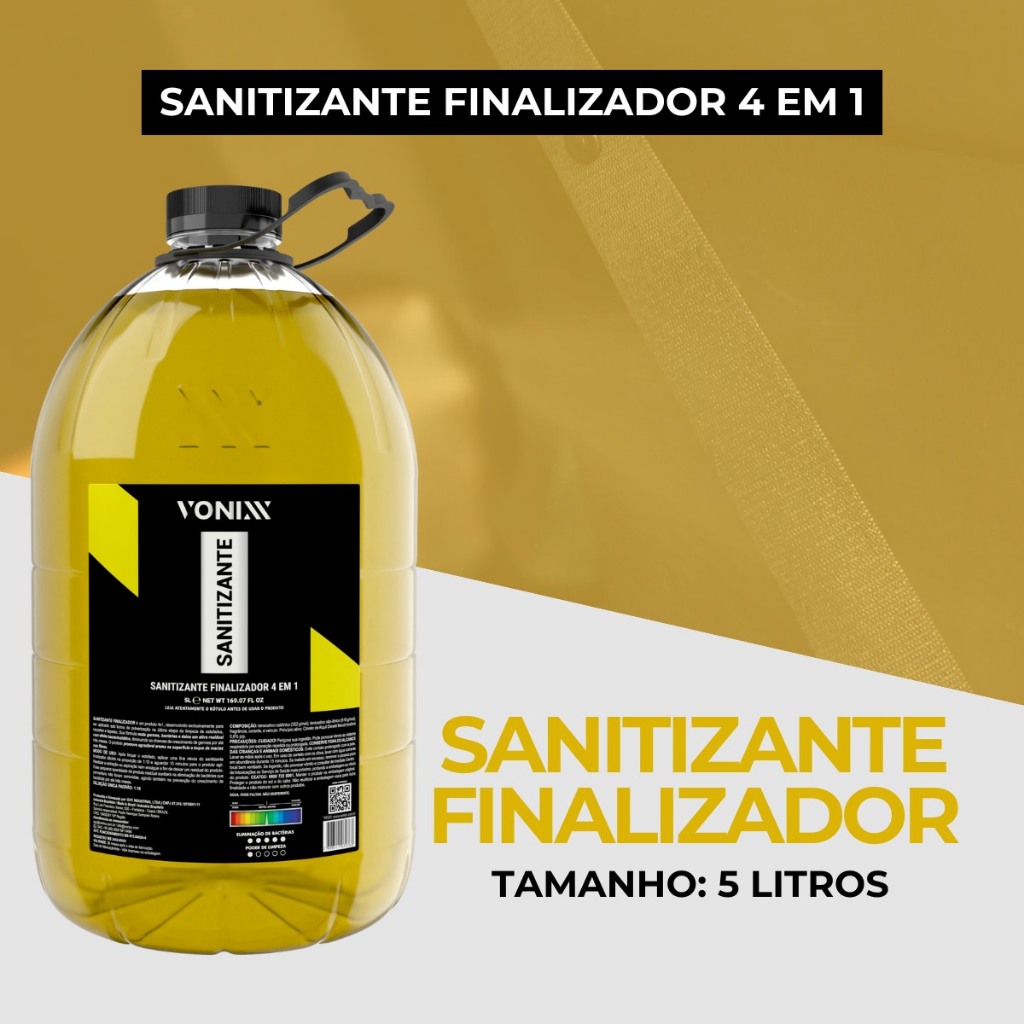 Limpador Finalizador é um produto 4x1, desenvolvido exclusivamente para ser aplicado sob forma de pulverização na última etapa da limpeza de estofados, carpetes e tapetes. Sua fórmula mata germes, bactérias e deixa um ativo residual com efeito bacteriostático, diminuindo as chances de crescimento de germes por até três meses. O produto promove agradável aroma na superfície e toque de maciez nas fibras. Tamanho: 5 Litros PH Neutro Diluição única padrão: 1:10 Observação: Recomendamos spot teste para verificar a compatibilidade do produto com a superfície Uso recomendado: Tecidos naturais e sintéticos Informações Adicionais: Não utilizar este produto em plástico LEIA ATENTAMENTE O RÓTULO ANTES DE UTILIZAR O PRODUTO -Passo 3 dos do sistema VSC -Limpeza de estofados, carpetes, tapetes Modo de usar: 1. Após a lavar o estofado, aplicar uma fina névoa de Limpador finalizador diluído na proporção de 1:10 e aguardar 10 minutos para o produtos agir. 2. Realizar a extração ou aspiração sem enxágue a fim de deixar um residual do produto. 3. Essa pequena quantidade de produto residual auxiliará na eliminação de bactérias que porventura não foram removidas, agindo também na prevenção do crescimento de bactérias por até três meses. Precauções: Cuidado! Perigosa sua ingestão. Evite contato prolongado com a pela. Lavar as mãos após o uso. CONSERVE FORA DO ALCANCE DAS CRIANÇAS E ANIMAIS DOMÉSTICOS.