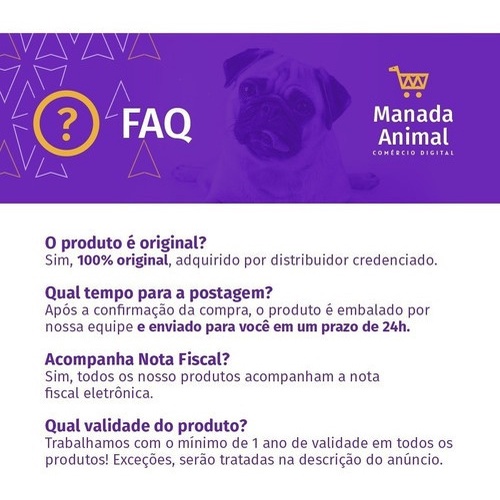 A MANADA ANIMAL é um marketplace de produtos veterinários. É a escolha certa para tutores que prezam pela qualidade dos produtos que seu animal necessita. Tudo com o suporte de uma equipe de veterinários e gestores com mais de 10 anos de experiência no mercado. Fique tranquilo, todos os nossos produtos são originais, adquiridos através de distribuidores credenciados! Ah, e todas as vendas acompanham nota fiscal! MANADA ANIMAL, Tranquilidade pra você, cuidado para ele! _________________________________ EYE CLEAN UP Seja por conta da poeira, clima ou ambiente é comum ver nossos pets com olhos lacrimejando, espirrando ou com rosto sujos, por conta da sensibilidade da região, o ideal é investir em produtos específicos para limpeza das áreas. Conte com o desempenho da Loção Eye Clean Up Soft Care Face Olhos e Focinho Cães e Gatos 100ml que higieniza e neutraliza odores removendo ainda sujeiras desagradáveis. Benefícios: - Higieniza a face e o focinho do seu pet. - Higieniza e neutraliza odores. - Remove as crostas de sujeira. - Indicado para cães e gatos. - PH balanceado. _________________________________________________________ OTO CLEAN UP Higieniza e neutraliza odores desagradáveis, Remove excesso de cerúmen e possui PH balanceado.100mlIndicado para higienização do conduto auditivo de cães e gatos.Modo de uso:Uso tópico. Instilar o produto dentro do conduto e massagear bem. Retirar o excesso da parte externa com ajuda de algodão ou gaze. Utilizar de 2 a 3 vezes por semana ou conforme necessidade.Precauções:Evitar a ingestão ou contato com os olhos. Conservar em local seco, fresco e arejado, ao abrigo da luz solar direta e fora do alcance de crianças.Armazenar longe de alimentos e bebidas. No caso de contato com os olhos enxaguar abundantemente.Ingredientes:Água, Ácido Glicirrhízico, Glicerina, Cocoanfoacetato de Sódio, Óleo Essencial de Menta e Camomila, Pantenol e Conservantes.
