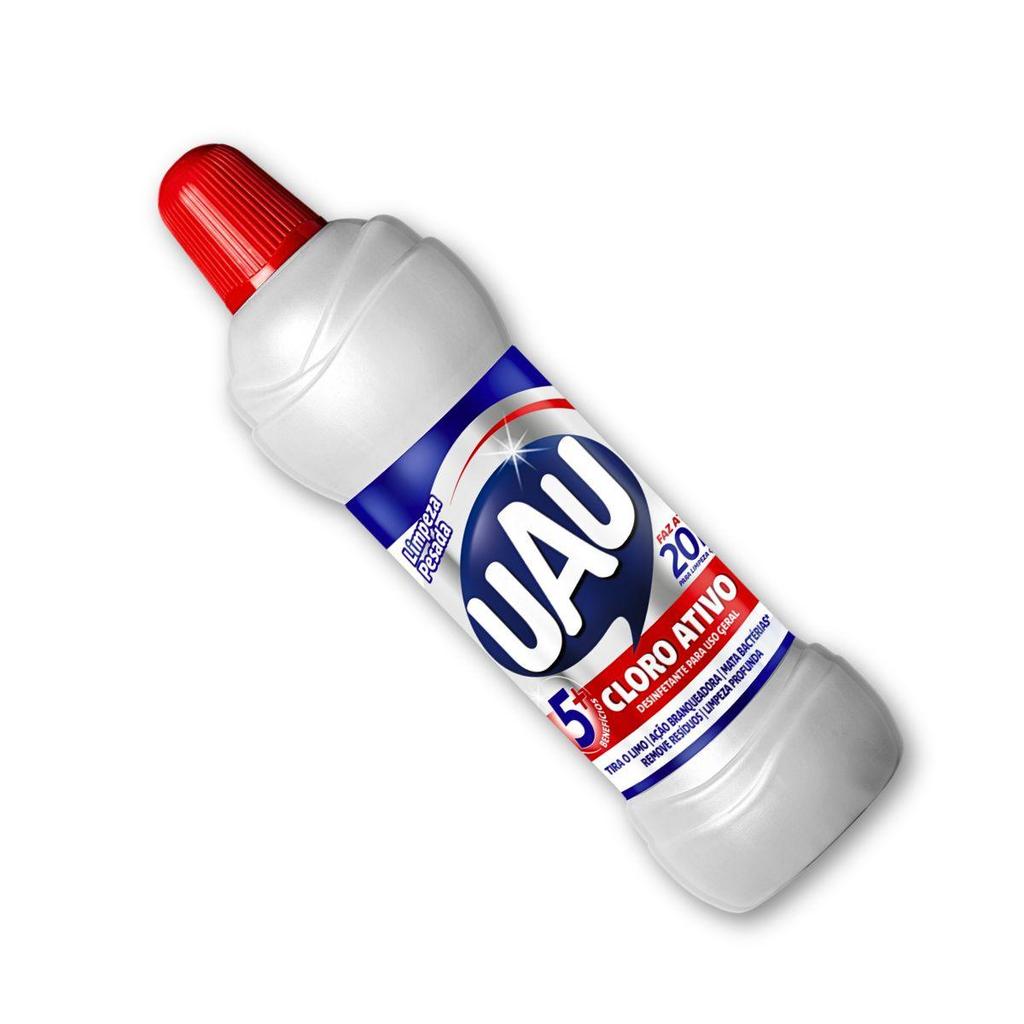 Limpeza Pesada 1L Cloro Ativo UAU Desinfetante Geral Eficiente contra as sujeiras mais difíceis! Sua fórmula concentrada oferece maior performance de limpeza com perfume surpreendente para sua casa.