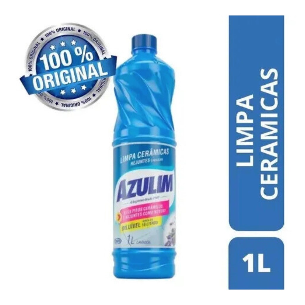 Azulim Limpa Cerâmicas e Azulejos Lavanda – 1 Litro (Rende até 15 Litros) O Azulim é ideal para limpeza profunda de cerâmica, rejunte e azulejos. Sua fórmula especial remove sujeiras, manchas e incrustações com eficiência, devolvendo o brilho e a aparência original às superfícies. Pode ser usado tanto em faxinas pesadas quanto na limpeza diária, deixando um agradável aroma de lavanda no ambiente. Benefícios: Alto poder de limpeza e desincrustação. Indicado para pisos cerâmicos, azulejos e rejuntes. Rendimento: 1 litro rende até 15 litros após diluição. Produto biodegradável. Perfume agradável de lavanda. Modo de usar: Diluir 1 parte de Azulim para 15 partes de água em um balde plástico. Aplicar sobre a superfície, esfregar, deixar agir por alguns instantes e enxaguar. Não deixar o produto secar. Usar luvas durante o manuseio. Conservação: Guardar na embalagem original, protegida da luz e bem fechada. Não reutilizar a embalagem vazia para outros fins. Precauções: Manter fora do alcance de crianças e animais. Não ingerir. Evitar inalação, aspiração e contato com olhos e pele. Em caso de contato, lavar com água em abundância. Em caso de ingestão, procurar atendimento médico levando o rótulo do produto.