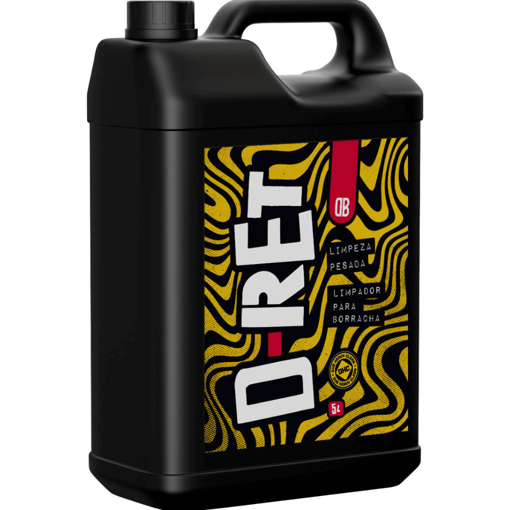 D-RET 5L DUB BOYZ Desenvolvido para ser utilizado por profissionais a fim de auxiliar na limpeza de pneus e borrachas, o D-RET assegura uma limpeza profunda, restaurando os aspectos originais da borracha. MODO USO: 1- Com a borracha ou pneu ainda seco, aplique o produto pulverizando-o. 2- Aguarde a ação do produto sobre a sujeira por 30 segundos a 1 minuto. 3- Utilize uma escova ou pincel para esfregar a borracha. 4- Enxague abundantemente.