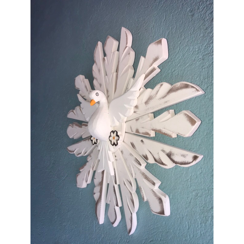 Divino Espírito Santo Resplendor de Madeira 50 cm de diâmetro Lindo artesanato Mineiro, peça entalhada a mão em madeira, com acabamento rústico e de excelente qualidade. Ideal para decoração da sala, consultório e ambientes rústicos entre vários outros locais, como festas temáticas, casamento, batizado, e festas religiosas. Tamanho: 45cm de diâmetro
