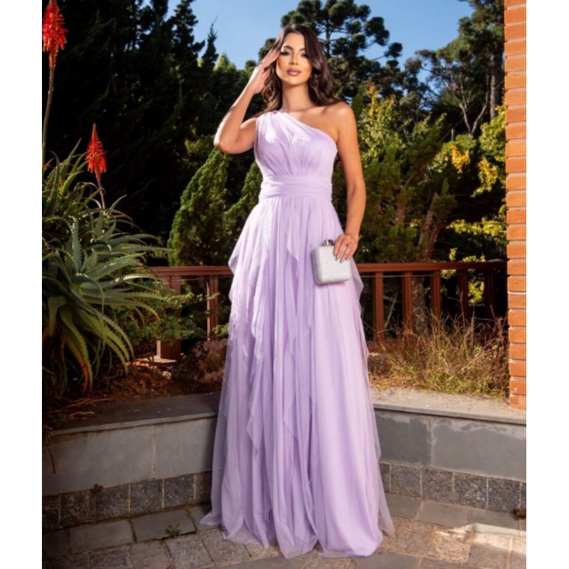 LINDO Vestido para Madrinha de casamento, debutantes, formaturas, convidadas Cascatas, um ombro só - mula manca