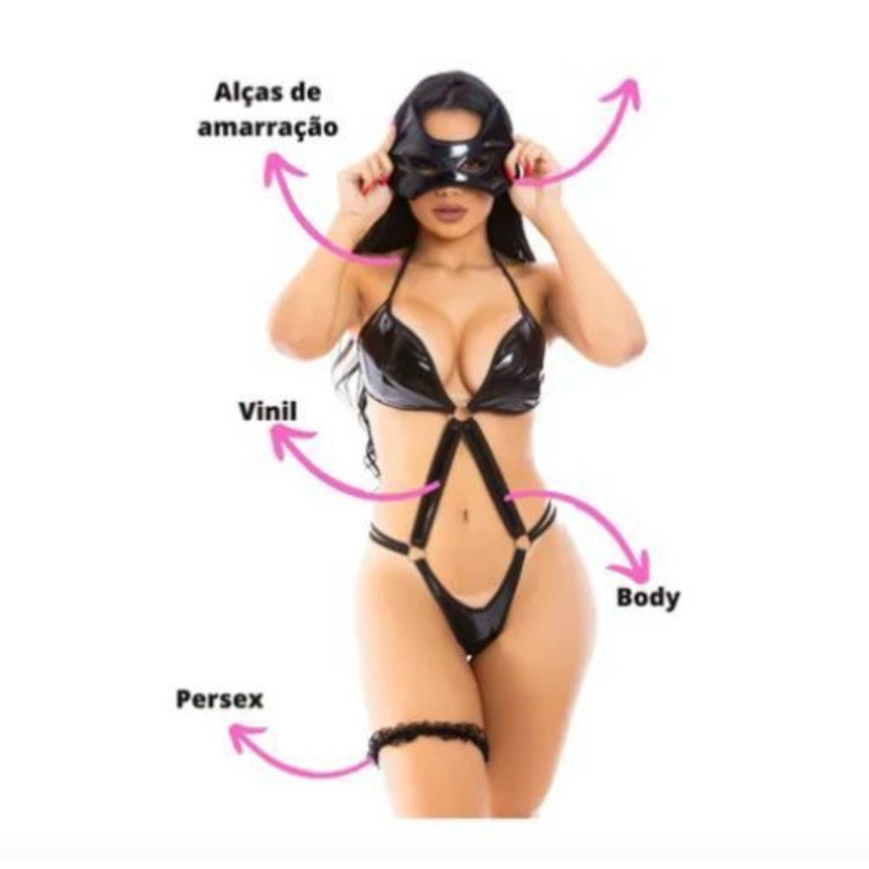 | Lingerie Body Sexy Lingerie em vinil tamanho único veste do P ao G este produto | R$ 49,00 | 30% | 4.9/5 | 126 |