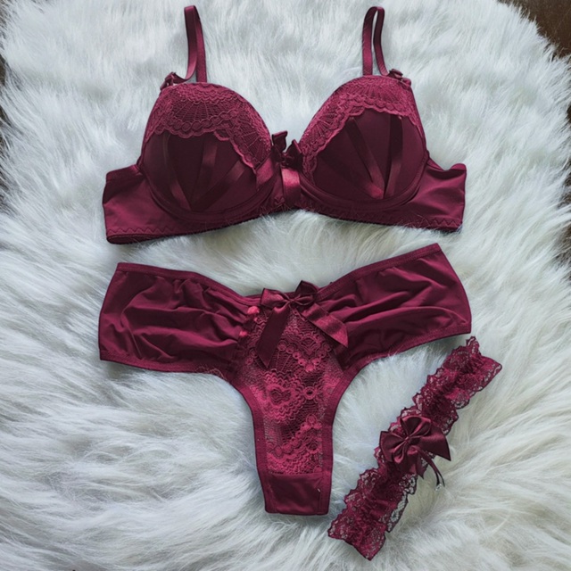 Lingerie Com 3 Peças Sutiã Calcinha e Perneira Langerie Com Bojo Soutien Calcinhas Fio Dental