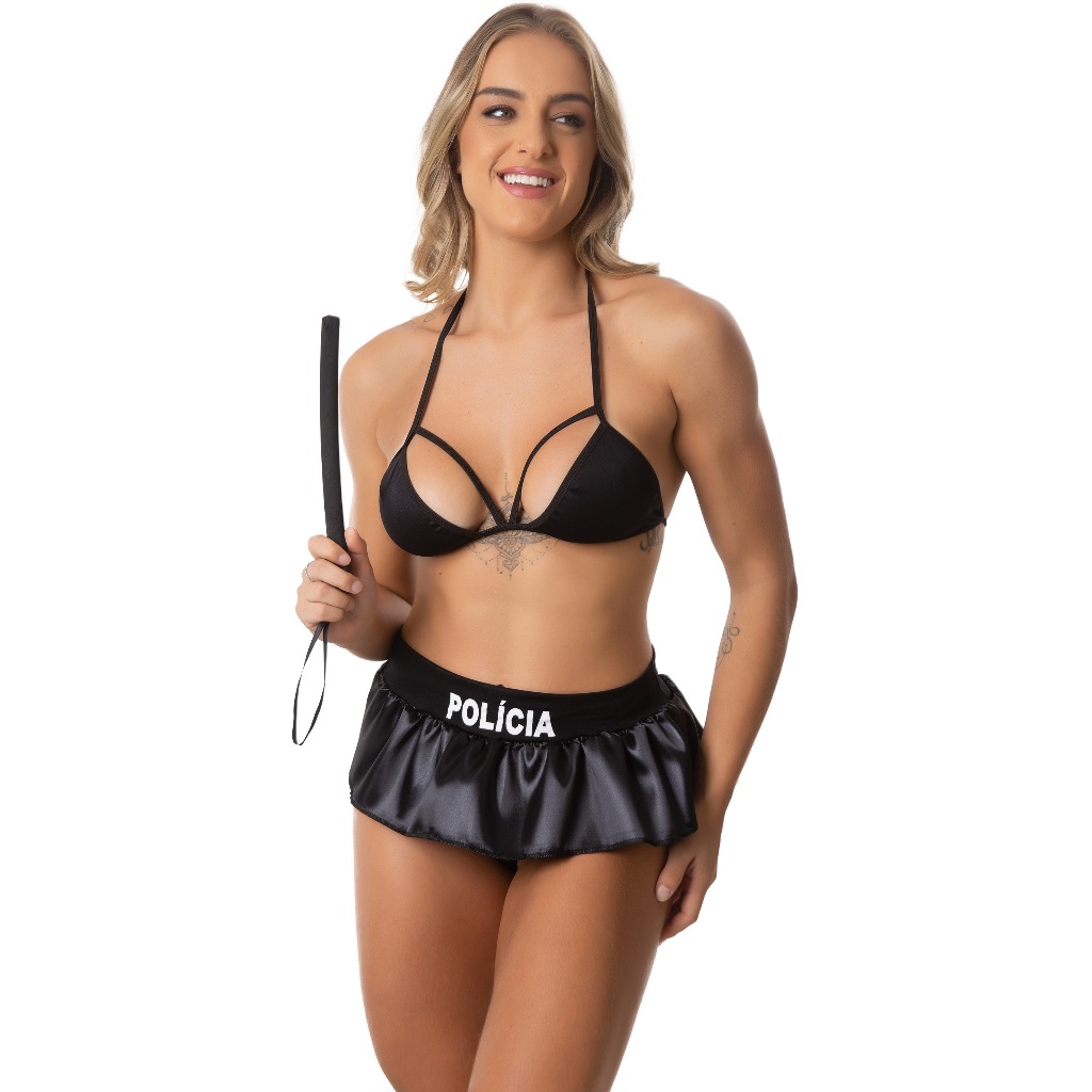 Descrição : Tecido 100% Poliester , Veste do 34 ao 42 A Peça Compõe : Saia , Top , quepe e acessórios cassetete Envio 100% discreto Entre no reino da aplicação erótica com este cativante conjunto de lingerie policial, projetado para chamar a atenção e prender os sentidos com seu fascínio irresistível. Esteja você desempenhando o papel de policial bom ou policial mau este conjunto de lingerie policial certamente deixará uma impressão duradoura.