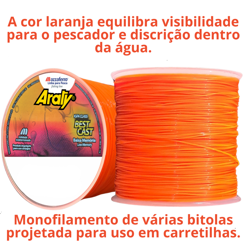 Linha Araty Best Cast Monofilamento Nylon 1/4LB Cor Laranja Para Pesca Esportiva Padrão IGFA Mazzaferro Várias Bitolas