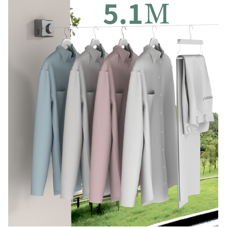 Linha De Lavanderia De Aço Inoxidável Varal Retrátil Ajustável Para Secagem De Roupas Internas E Externas Invisíve