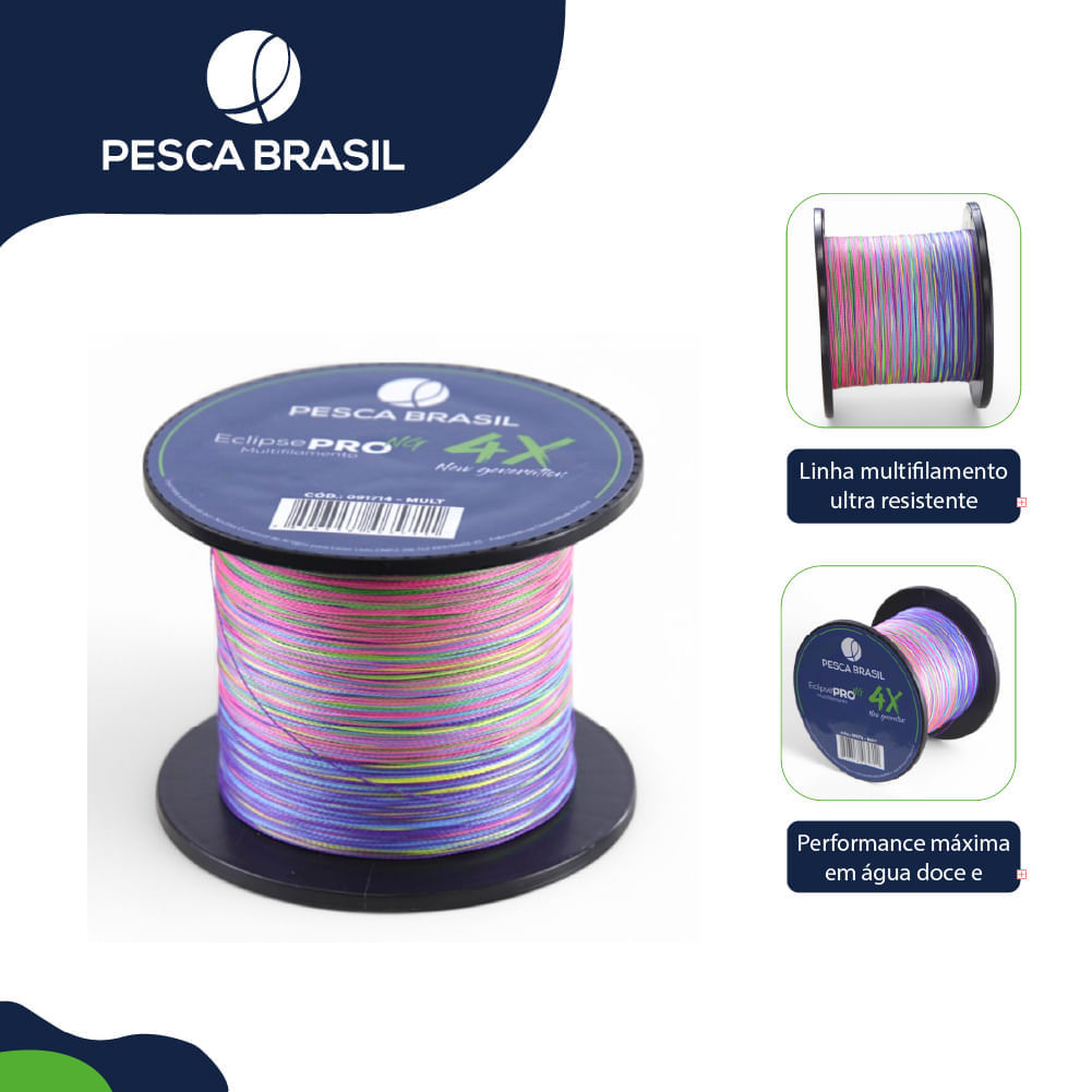 <p>Tenha mais desempenho nas suas pescarias com a Linha Multi Eclipse Pro 4X NG da Pesca Brasil! Com tecnologia multifilamento e altíssima resistência, ela garante maior precisão nos arremessos e durabilidade até nas situações mais desafiadoras. Ideal para pescadores exigentes que buscam qualidade e confiabilidade em cada captura.</p><br><br><ul><br> <li><strong>Tecnologia multifilamento:</strong> mais resistência, sensibilidade e performance nos arremessos.</li><br> <li><strong>Alta resistência à tração:</strong> suporta até 11 kg (24,3 lbs), perfeita para peixes de médio porte.</li><br> <li><strong>Espessura de 0,18 mm:</strong> ideal para pescas que exigem discrição na água sem abrir mão da força.</li><br> <li><strong>Carretel com 500 metros:</strong> excelente custo-benefício para pescarias prolongadas.</li><br> <li><strong>Material em polietileno:</strong> durável, leve (111g) e resistente ao desgaste.</li><br></ul><br><br><p>Se você está cansado de linhas que arrebentam facilmente ou não oferecem a precisão que a sua pescaria exige, a Linha Multi Eclipse Pro 4X NG é a escolha ideal. Com desempenho confiável, ela proporciona mais tranquilidade e controle, seja em águas doces ou salgadas, sendo perfeita para quem busca resultados e uma experiência superior na pesca esportiva ou recreativa.</p><br><br><h2>Ficha técnica</h2><br><ul><br> <li><strong>Nome da marca:</strong> Pesca Brasil</li><br> <li><strong>Tipo do produto:</strong> Linha de pesca</li><br> <li><strong>Modelo / Linha:</strong> Linha Multi Eclipse Pro 4X NG</li><br> <li><strong>Material:</strong> Polietileno</li><br> <li><strong>Comprimento:</strong> 500 metros</li><br> <li><strong>Peso:</strong> 111g</li><br> <li><strong>Diâmetro:</strong> 0,18 mm</li><br> <li><strong>Resistência:</strong> 11 kg | 24,3 lbs</li><br> <li><strong>Medidas da embalagem:</strong> 9 x 7 cm</li><br> <li><strong>Garantia:</strong> 6 meses contra defeito de fabricação</li><br> <li><strong>Tipo:</strong> Multifilamento</li><br> <li><strong>Tipo de pesca indicada:</strong> pesca esportiva e pesca em locais com vegetação, pedras ou estruturas onde é necessária maior resistência e sensibilidade</li><br></ul><br>