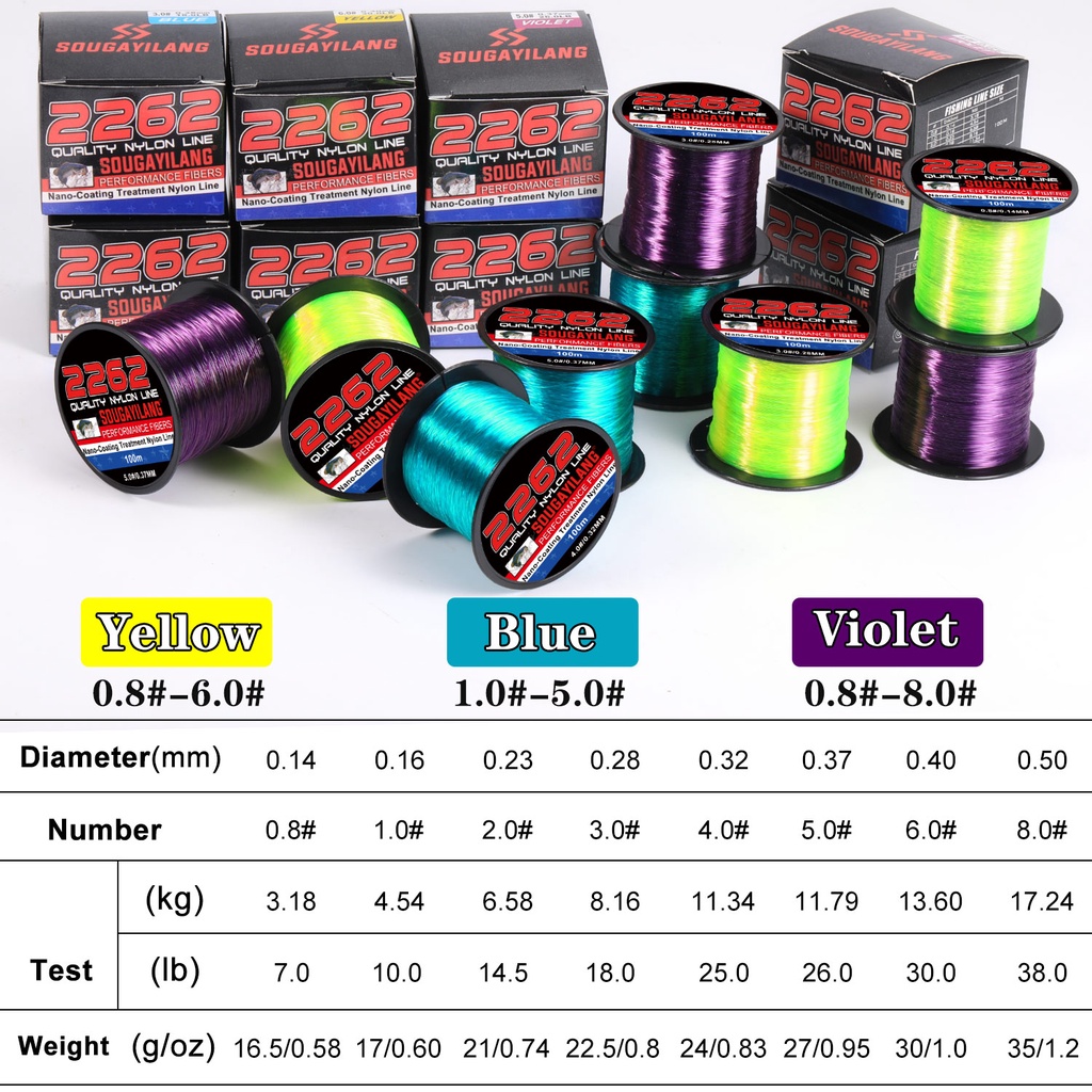 Linha De Pesca De Monofilamento Sougayilang Material 100M 3 Cores 0,14mm-0,50mm Max Drag 7-38lb