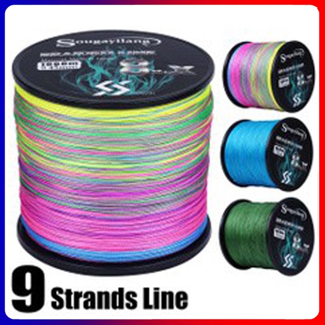 Linha de Pesca Sougayilang 9 Strands Braided PE 1000m 3 Color Fio trançado 0.14MM-0.45MM Max Drag 7.6-45.8KG