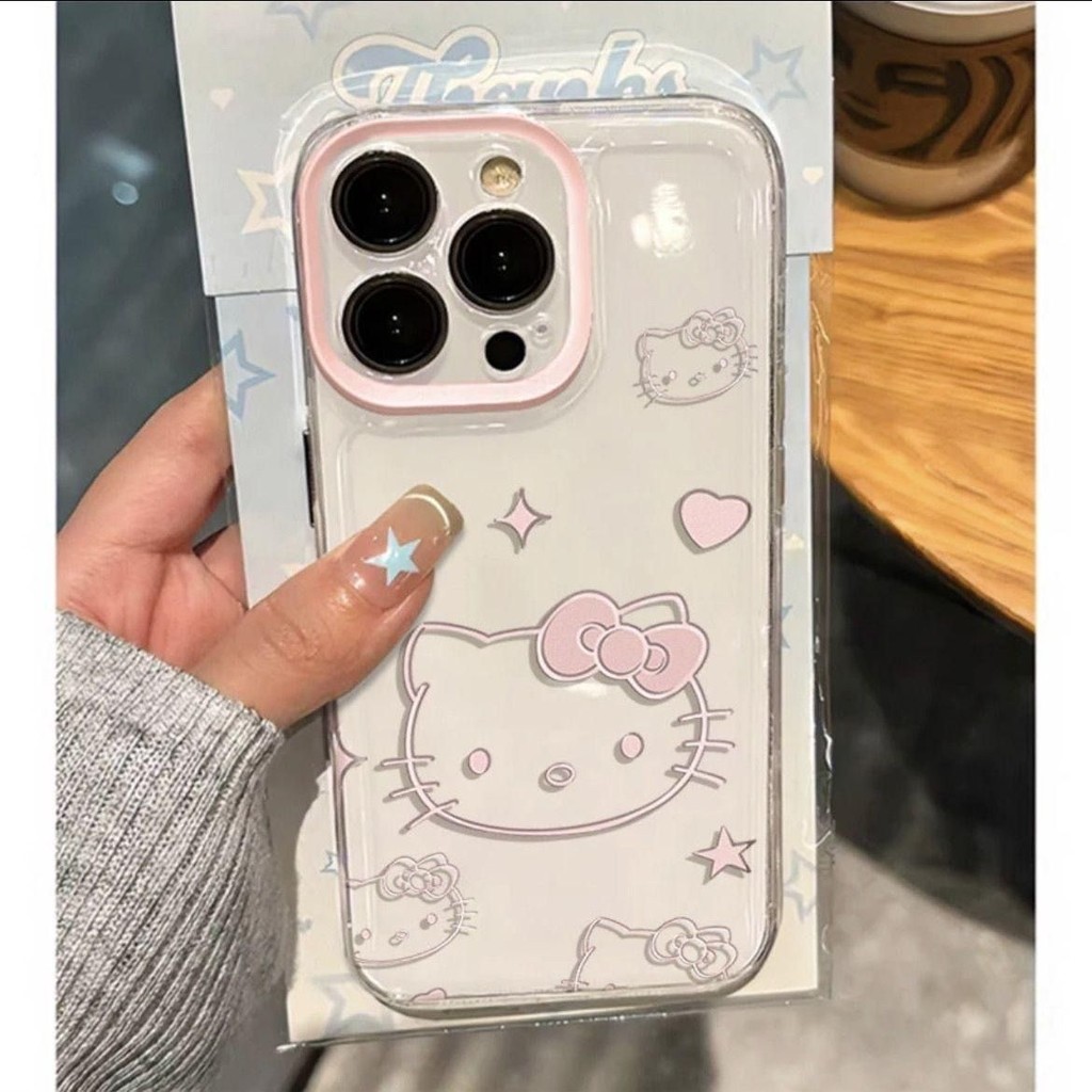 Linha Hello Kitty caso de telefone adequado para iPhone 11 12 13 14 15 16 Promax Plus transparente caso macio à prova de