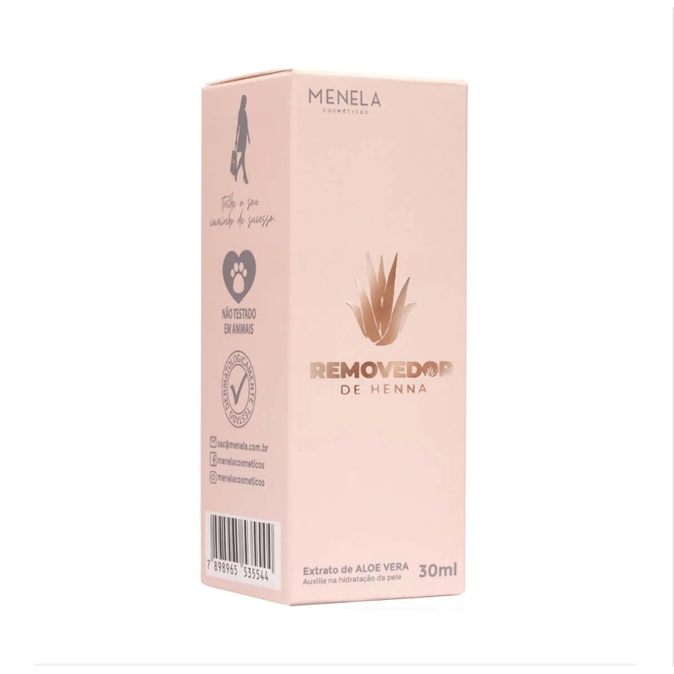 AS HENNAS MENELA tem em sua composição, extrato da planta Lawsonia inermes (Henna), e micro partículas (nanotecnologia) com princípios ativos capazes de penetrar as camadas da pele, de maneira mais profunda, potencializando de forma mais rápida e eficaz a coloração do pelo e da pele. Benefícios *Não contém chumbo *Não contém amônia *Não contém peróxido de hidrogênio *Fácil aplicação *Batoque integrado na tampa *Alta fixação *Longa duração *Não testado em animais *Contém na embalagem: 1 Henna MENELA 2,5 g 1 Fixador de Henna MENELA 15 ml MODO DE USAR: 1º Higienize o local onde será aplicada a Henna MENELA, deixando livre de oleosidade e qualquer outra impureza. 2º Agite o Fixador de Henna MENELA antes de utilizar. 3º Coloque em um recipiente, 01 medida de (pazinha) da Henna, e acrescente de 15 à 25 gotas do Fixador MENELA. Devido as partículas da Henna serem muito pequenas (NANOTECNOLOGIA), indicamos que seja utilizado um mixer na preparação, para atingir a consistência ideal, de forma mais rápida. Se necessário, adicione algumas gotas de água mineral até atingir a mistura desejada. 4º Aplique a mistura nas sobrancelhas com um aplicador de sua preferência, e deixe agir de 5 à 20 minutos, dependendo do resultado esperado. 5º Após deixar agir a misturinha nas sobrancelhas, elimine todo o excesso, utilizando algodão umedecido com água mineral.
