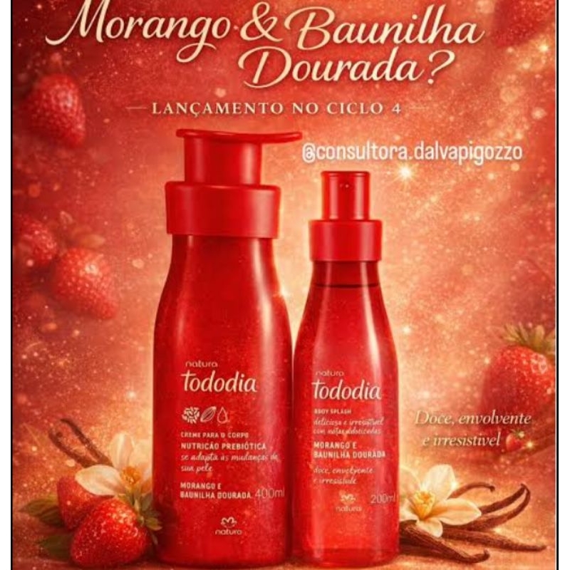 Linha kit creme hidratante body splash Natura tododia morango e baunilha dourada