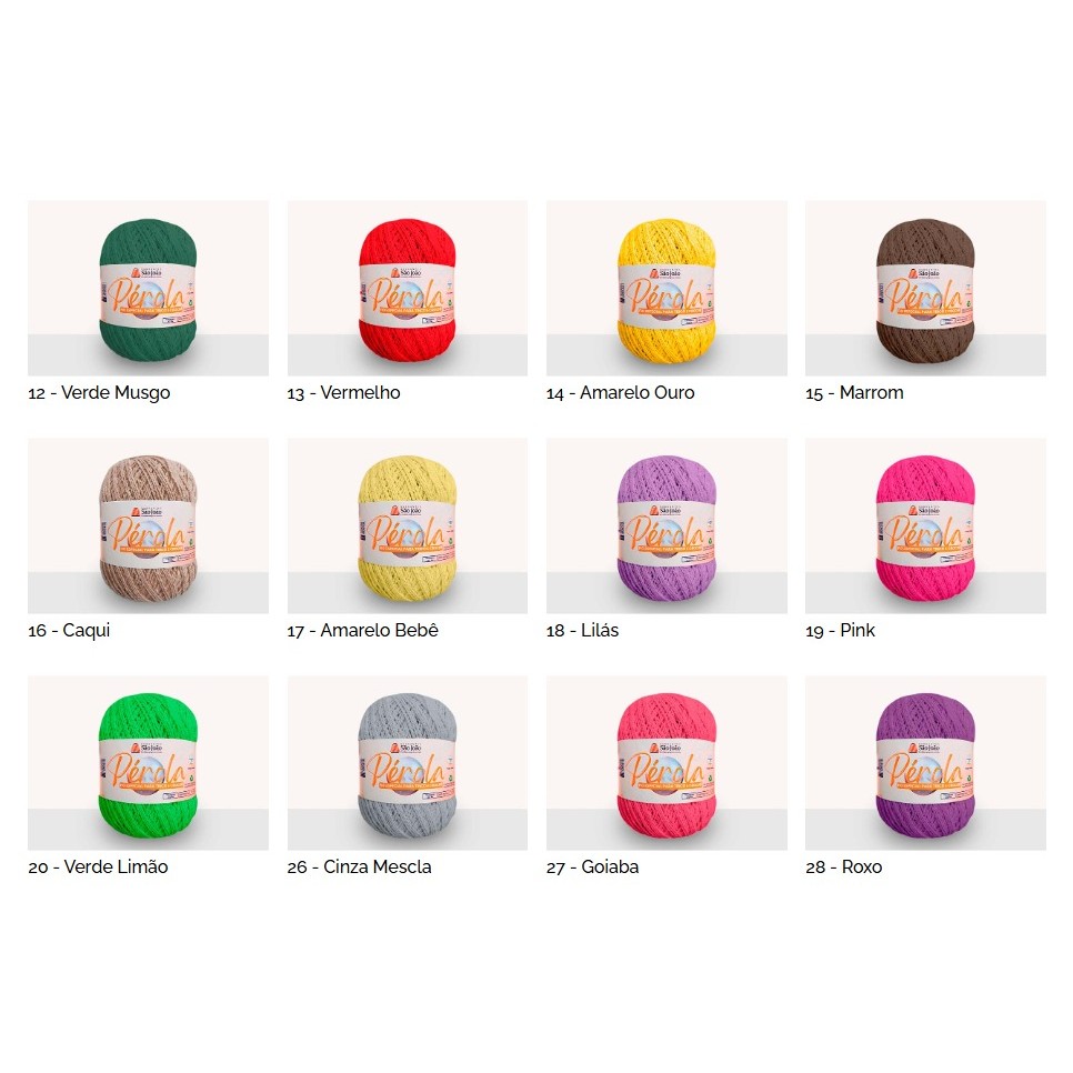 Linha Pérola Novelo 460 metros Fio especial para crochê e tricô, ideal para vários tipos de trabalhos Composição 85% Algodão Comprimento 460 metros TEX. 295,3 Fio: 4/2 Ne Agulha Recomendada: Crochê 2,0mm e 2,5mm A linha Pérola da Barbantes São João é produzida com material reciclado. As opções de cores vão deixar seus trabalhos vívidos. A linha Pérola é de fácil manuseio, ideal para confecção de vestuários, bolsas, etc.