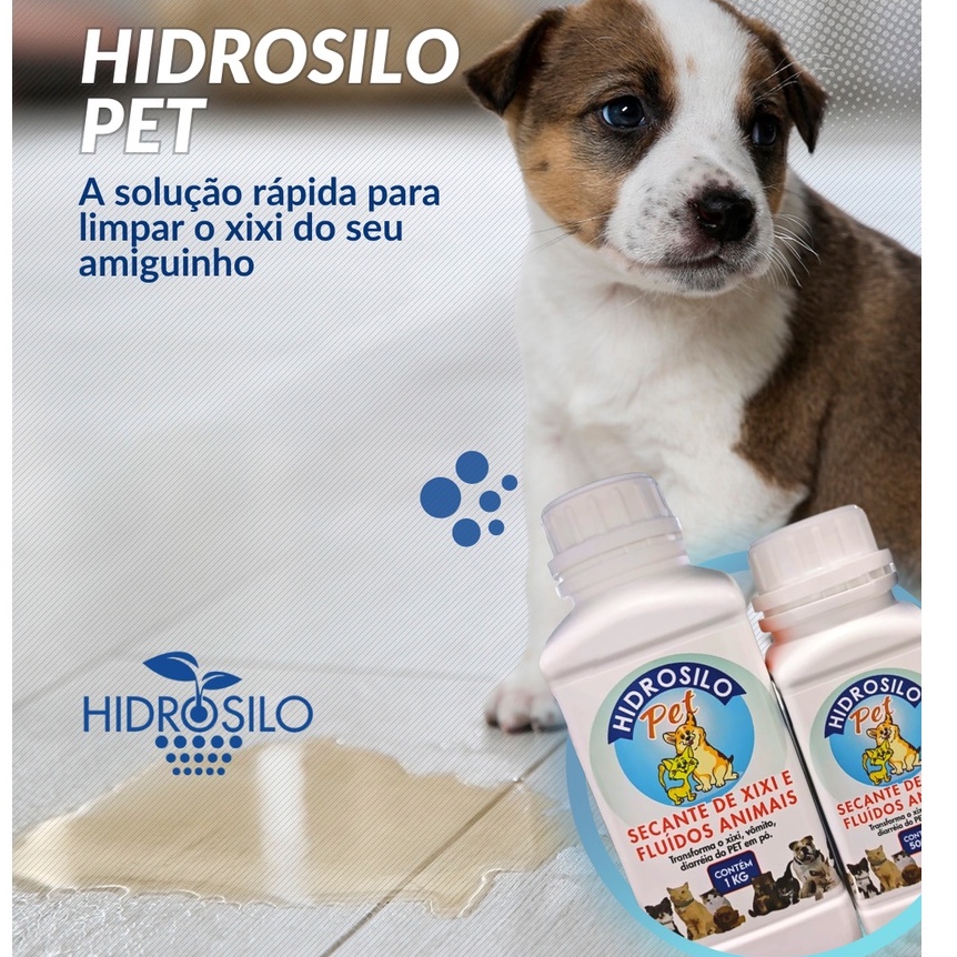O HIDROSILO PET é a solução rápida para limpar o xixi do seu pet usando pouca água. Dispensa o uso de panos de limpeza, evita o contato direto das mãos com a urina ou o dejeto do animal. É um produto totalmente atóxico que não traz riscos para humanos e animais. Pode ser aplicados em dejetos de animais em apartamentos, parques, calçadas, condomínios, prédios, clinicas, veículos, etc. Como usar: Espalhar o HIDROSILO PET em quantidade suficiente para cobrir todo o xixi e esperar 1 a 2 minutos. Cada 5g de HIDROSILO PET transforma em pó cerca de 50mL de xixi. Depois de transformar em pó é só descartar o xixi no lixo doméstico, pois o HIDROSILO PET é biodegradável. O xixi em pó pode ser varrido ou aspirado com aspirador portátil. Economize água na sua casa usando HIDROSILO PET e ajude o nosso planeta.