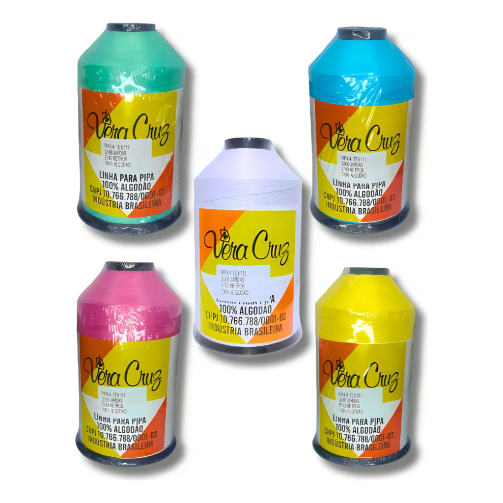 Nome: Linha para pipa Material: Algodão Tipo: Fio 4 Marca: Vera Cruz Tamanho: 3000 jardas Cor: Mandamos de acordo com nosso estoque Envio Imediato