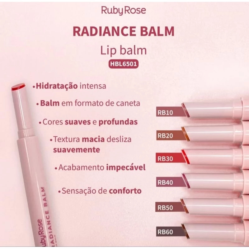 Lip Balm Labial Radiance Balm Linha Rosa by Ruby Rose - HB-L6501