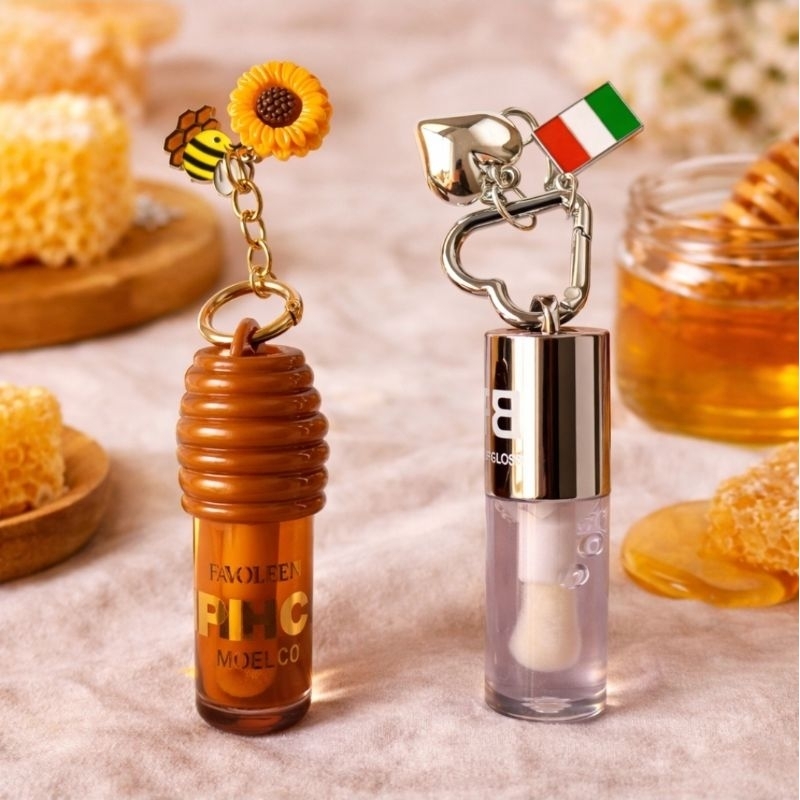 Lip Gloss Labial 2 Unidades Hidratante Brilho Sabores Morango Chocolate Mel com Chaveiro