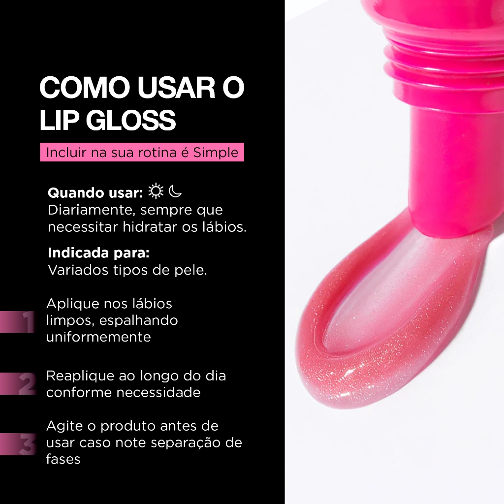 A People Colour é a irmã mais nova da Simple Organic, com direção criativa da Malu Borges. A marca nasce para reinventar a maquiagem e o cuidado pessoal com produtos de beleza veganos, leves e multifuncionais, que unem tecnologia e inovação. Com foco em uma beleza real, divertida e autêntica, oferece fórmulas limpas, seguras e eficazes, criadas para acompanhar diferentes momentos do dia a dia e valorizar a autoexpressão de cada pessoa. Sobre o produto: O Lip Gloss Berry Muffin da People Colour É perfeito para hidratar e dar aquele acabamento glow nos lábios. Fórmula com ingredientes de origem natural, vegana e cruelty-free, livre de Petrolato, Óleo Mineral, Parafina, Cera de Abelha, BHT, Poliisobutileno, Parabenos e Vaselina. É rico em Óleo de Rícino, Squalane e Vitamina E, que hidratam e protegem de forma leve, sem pesar. E o melhor: cuidam dos seus lábios com alta performance e respeito ao planeta. O resultado é um brilho suave que vai fazer a diferença nos seus looks e por onde você for. A fórmula das três tonalidades do Lip Gloss da People Colour é enriquecida com componentes e ativos de natureza oleosa, que são responsáveis por proporcionar tanto a textura ideal quanto os incríveis benefícios para os lábios. Devido a essa característica, é normal que o produto apresente uma leve separação de fases quando permanece muito tempo na mesma posição. Para aproveitar ao máximo o nosso Lip Gloss, recomendamos agitar o produto antes de usar, caso observe essa particularidade durante a aplicação. Volume: 10 g Quais são os ingredientes? Óleo da Semente de Mamona, Copolímero de Capriloil Glicerina/Ácido Sebácico, Triglicerídeo Caprílico/Cáprico, Triidroxiestearina, Aroma, Caprilato de Glicerila, Tocoferol, Óleo de Soja, Mica, Esqualano, Corante Branco 77891, Corante Vermelho 77491, Linalol, Corante Vermelho 15850. Ativos: Óleo de Rícino, Complexo Formador de Filme Natural 100% Plant-Based e Squalane.