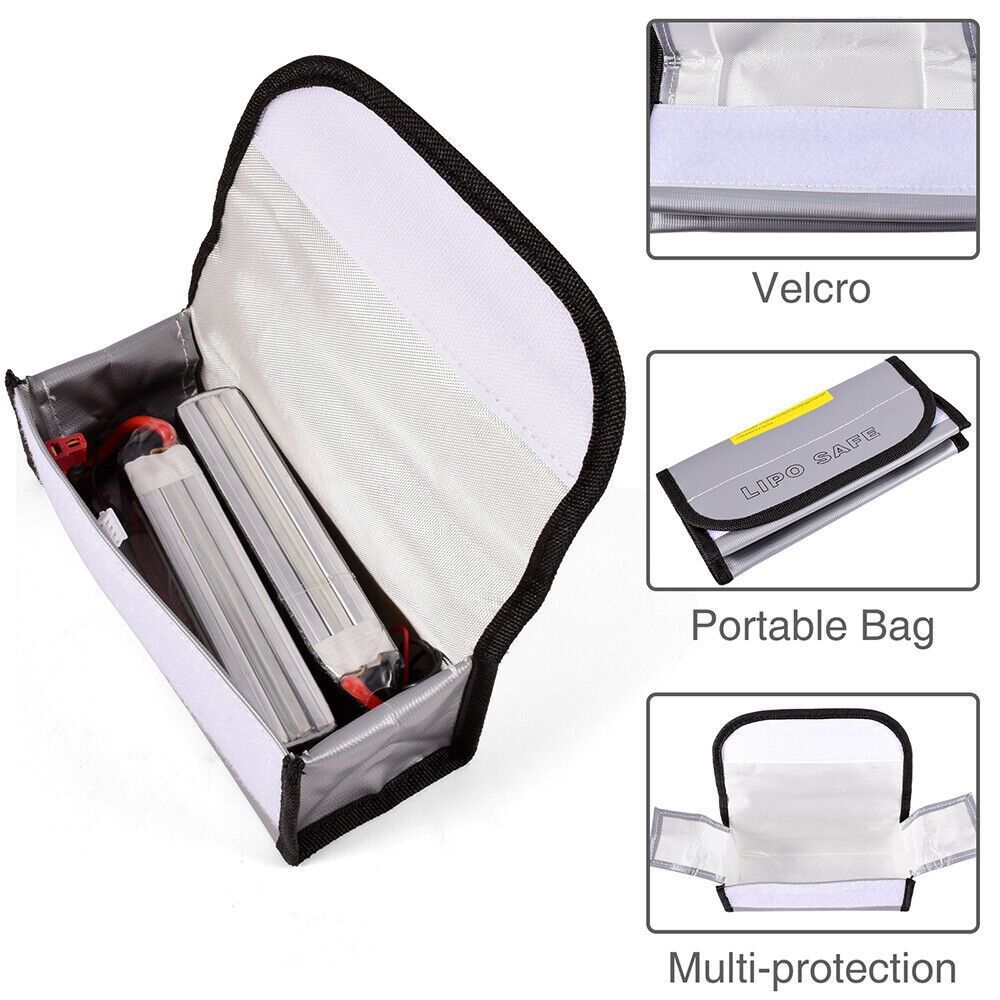 Mantenha suas baterias LiPo armazenadas com mais segurança! A Lipo Safe Bag 18x7x6cm é uma mini bolsa resistente, projetada para minimizar os danos em caso de incêndio ou falha da bateria. Seu material especial ajuda a conter chamas e reduzir a propagação de calor, proporcionando uma camada extra de proteção ao carregar ou armazenar baterias de lítio. Importante: Esta bolsa não elimina os riscos de incêndio, mas reduz os danos em caso de falha da bateria. Sempre siga as práticas seguras de carregamento e armazenamento. Fechamento em velcro para maior segurança Dimensões: 18x7x6cm , compatível com diversas baterias LiPo Essencial para armazenamento e transporte seguro Proteja seus equipamentos com responsabilidade!