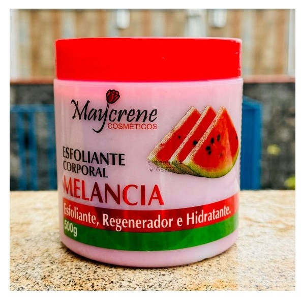 Creme esfoliante Maycrene 500grs - Pronta Entrega PRODUTO ENVIADO EM ATÉ 24HRS - ENTREGA EXPRESSA Disponível nas Fragrâncias: Rosa Mosqueta Maracujá Melancia O Creme Esfoliam-te Melancia, Rosa Mosqueta e Maracujá Maycrene Remove todas as células mortas da sua pele, através de uma esfoliação suave. Contem extrato de Melancia Que e rico em vitaminas A e C, agentes antioxidantes que combatem radicais livres responsáveis pelo envelhecimento precoce. possui fragrância suave e refrescante, tendo efeito calmante, pode ser aplicado em todos os tipos de pele. Modo De Uso: Aplicar o produto pelo corpo com movimentos suaves, enxaguar em seguida. Precauções: Manter fora do alcance das crianças e longe da luz solar direta.