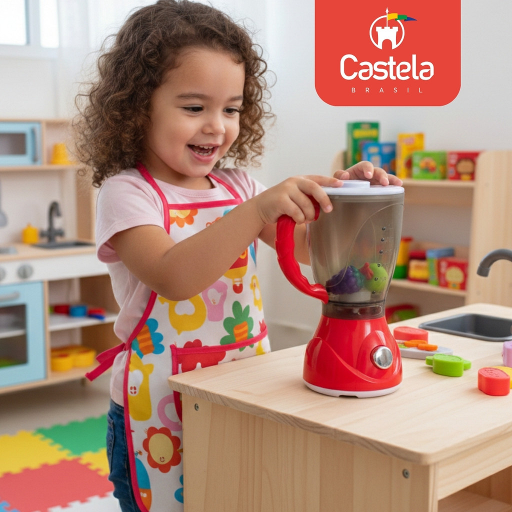 DESCRIÇÃO DO PRODUTO O CASTELA Liquidificador Infantil traz mais diversão para as brincadeiras de cozinha. Com luzes, sons realistas e acessórios, esse liquidificador é ideal para crianças que gostam de simular tarefas do dia a dia de maneira segura e interativa. Perfeito para o desenvolvimento da coordenação motora e da imaginação. Destaques do produto: Efeitos de luz e som: Sons e luzes que simulam o funcionamento de um liquidificador de verdade. Acessórios inclusos: Itens adicionais para completar a experiência de brincadeira. Estimula o faz de conta: Ideal para incentivar a criatividade e habilidades motoras. Material seguro: Feito com materiais resistentes e não tóxicos, recomendado para crianças a partir de 3 anos. Dimensões aproximadas: Compacto e fácil de armazenar. Inclui: Liquidificador infantil com luz e som, acessórios para brincar. CARACTERÍSTICAS TÉCNICAS: Conteúdo da Embalagem: 1 Liquidificador e Duas Frutinhas Dimensões Aproximadas do Produto: 23cm x 19cm x 8cm (Altura x Largura x Comprimento/Profundidade). Dimensões Aproximadas da Embalagem:25cm x 21cm x 10cm (Altura x Largura x Comprimento/Profundidade). Material/Composição: Plástico Idade Mínima Recomendada: A partir de 3 Anos Participantes: A partir de 1 pessoa Alimentação: 3 PILHAS AA 1.5V NÃO INCLUSAS Marca: Castela Brasil Referência: CBS0216 Outras informações: As cores podem variar entre as imagens mostradas acima e o produto. Imagens meramente ilustrativas. Aviso: As informações e imagens divulgadas são de total responsabilidade do fabricante/fornecedor. Produto lacrado e disponível a pronta entrega para todo Brasil! APROVADO PELO INMETRO