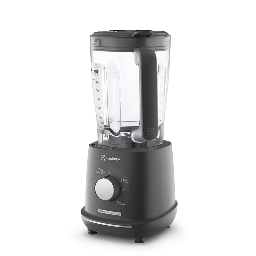 Transforme suas receitas com o Liquidificador Electrolux EBL1000 Efficient TriForce. Equipado com potência de 1000W, ele garante resultados rápidos e consistentes para todas as preparações do dia a dia. Sua jarra de 2,7L (1,75L útil) oferece espaço de sobra para preparar sucos, vitaminas, molhos e muito mais, sem precisar dividir em várias etapas. A tampa possui medidores integrados de 1/2, 1/3 e 1/4 de xícara (120ml, 80ml e 60ml), que facilitam na hora de dosar os ingredientes. Com 5 velocidades e funções especiais como Pulsar, Autolimpeza e Gelo, você tem mais praticidade e versatilidade na cozinha. A função Pulsar remove sujeiras até 2x mais rápido, enquanto a função Autolimpeza simplifica o dia a dia, garantindo higienização sem esforço. O diferencial fica por conta da Tecnologia TriForce, que une potência, alta velocidade e lâminas ultra afiadas em aço inoxidável, proporcionando até 10x mais eficiência na hora de processar alimentos. Assim, você aproveita ao máximo o sabor e os nutrientes de cada ingrediente. Além disso, conta com porta fio, cabo de 80 cm e design moderno na tonalidade cinza, tornando mais prática e compondo com elegância sua cozinha. Caracteristicas: Liquidificador Marca: Electrolux Modelo: EBL1000 Número de velocidades: 5 Função pulsar: Sim Função autolimpeza: Sim Copo: Plástico Filtro: Não Lâminas: Integradas ao copo Lâminas em aço inox: Sim Porta fio: Sim Triturador de gelo: Sim Consumo de energia (kW/h): 1,0 kW/h Potência: 1000 W Capacidade total do copo: 2,7L Capacidade útil do copo: 1,75L Tipo de Tomada: 10A (4mm) Tipo de Plugue: 2 Pinos Conteúdo da Embalagem: 01 Liquidificador Electrolux EBL1000 Efficient TriForce 01 Manual do usuário e Garantia Garantia: 12 Meses Entrega do Produto: Todas as instruções, manuais e peças necessárias para a montagem são fornecidas junto com o produto