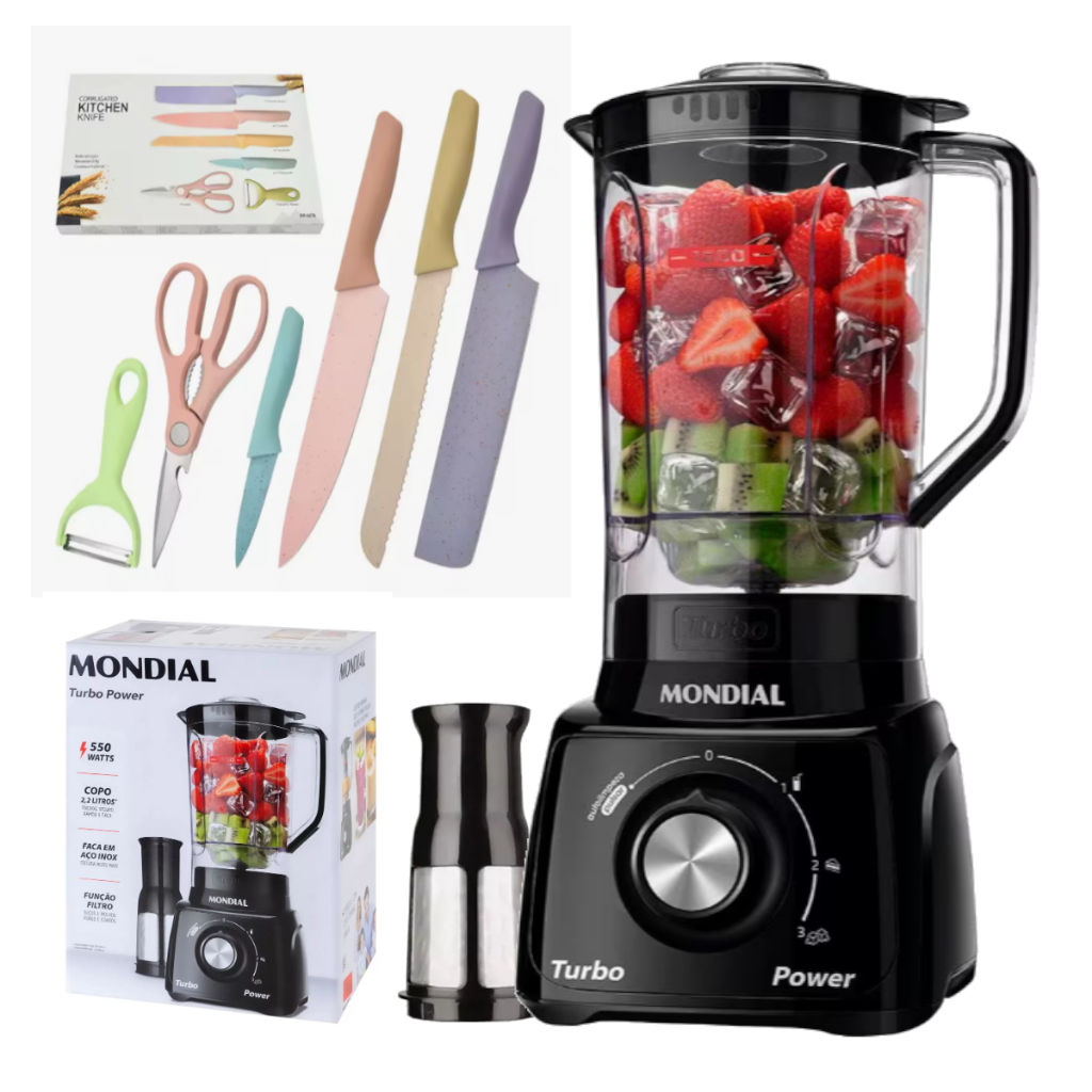 Liquidificador Mondial Turbo Power 2,2L - Com Filtro 3 Velocidades 550W 110V/220V - Envio Rápido