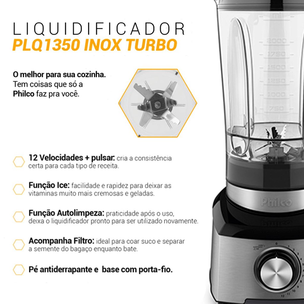 Liquidificador Turbo Inox Max Pro 6 1200W 2L PLQ1350 - Philco