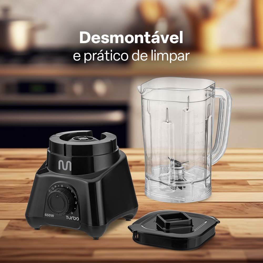 Liquidificador Turbo Preto 2,3L 3 Velocidades 650W 127V Multi Home - LQ651