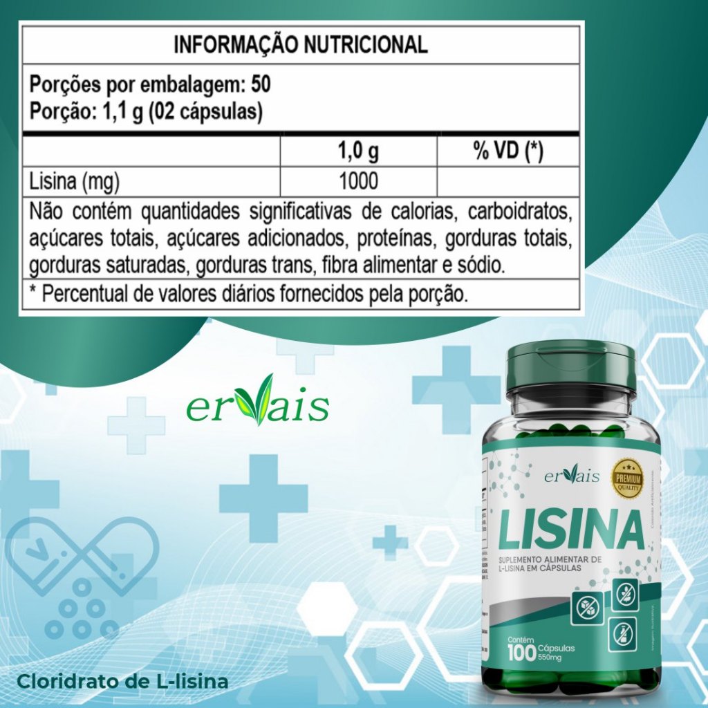 Apresentamos nosso suplemento de Lisina em cápsulas, uma escolha inteligente para fortalecer a sua saúde imunológica e promover o bem-estar geral. A Lisina, um aminoácido essencial, desempenha papéis cruciais em várias funções do corpo, oferecendo benefícios abrangentes para a sua saúde. Benefícios: Saúde Imunológica Fortalecida: A Lisina é conhecida por seu papel no suporte ao sistema imunológico, auxiliando na produção de anticorpos e na resistência contra invasores externos. Manutenção da Saúde Óssea: Este aminoácido desempenha um papel na absorção de cálcio, contribuindo para a saúde óssea e ajudando na prevenção de perda de massa óssea. Apoio à Produção de Colágeno: A Lisina é essencial para a síntese de colágeno, uma proteína crucial para a saúde da pele, cabelos, unhas e tecidos conectivos. Por que Escolher Nossa Lisina Pura Pureza Garantida: A marca Ervais é sinônimo de qualidade. Nossa Lisina Pura em Cápsulas é produzida com os mais altos padrões de pureza. Aminoácido Essencial: Fornecemos lisina na forma pura (L-Lisina), garantindo a entrega direta deste aminoácido vital sem aditivos desnecessários. Resultados Confiáveis: Nossos clientes confiam na eficácia dos nossos produtos, e a Lisina Pura não é exceção. Você pode esperar resultados consistentes ao escolher a marca Ervais. Conveniência em Cápsulas: As cápsulas fáceis de ingerir oferecem uma forma conveniente de incorporar a lisina à sua rotina diária, sem o sabor característico de alguns suplementos em pó. Sugestão de Uso: Ingerir 2 cápsulas (1000mg) ao dia ou conforme orientação de um profissional. Apresentação: Cada frasco contém 100 cápsulas de 500mg. RDC Anvisa 240/2018 E IN 28/2018. Produto a PRONTA ENTREGA! 100% dos nossos produtos são originais e acompanham NOTA FISCAL. Marca 100% regularizada com farmacêutico responsável pela produção, e produtos fabricados com matéria prima de qualidade. Boas compras. Equipe Ervais! ;)