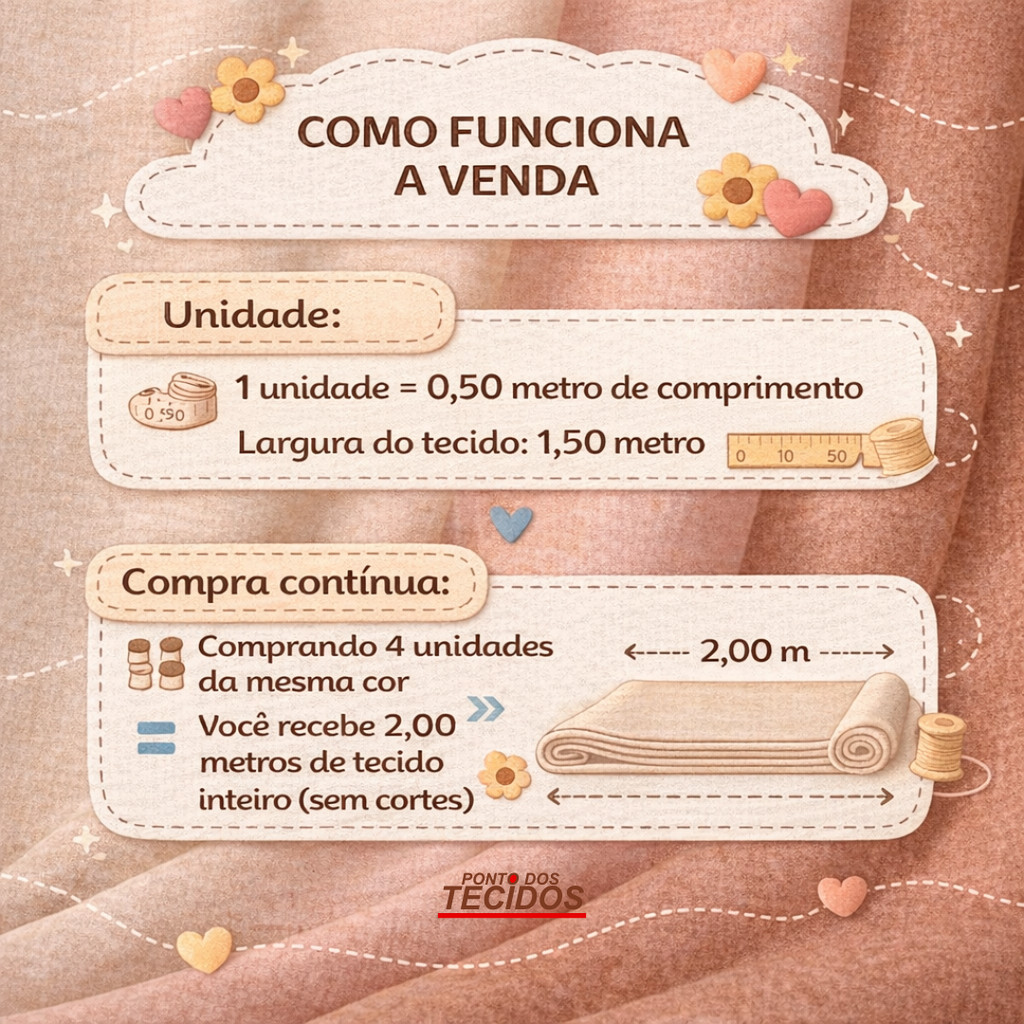 - Vendido por loja bem avaliada (Ponto Dos Tecidos — 4.9/5)