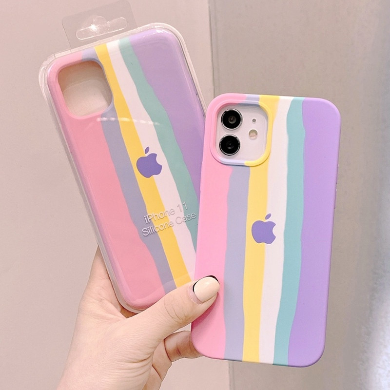 Listrada Arco-Íris Macaron Fofa Capa Capinha Para iPhone 17 Air 16 15 14 Plus 13 12 11 Pro Max XR Textura Anti-Impacto