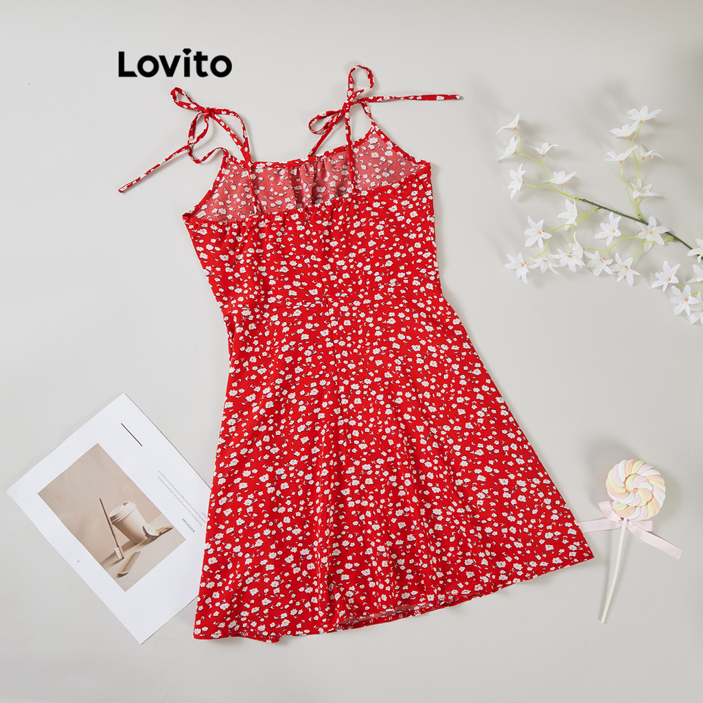 (Live Hosts' pick) Lovito Vestido Casual Ditsy Floral Com Gravata Frontal Para Mulheres L106AD552