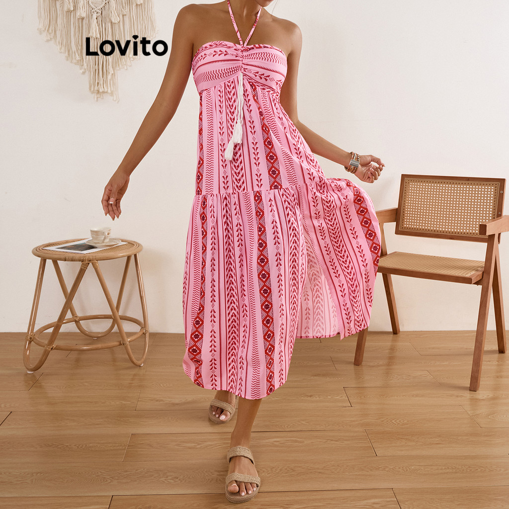 Live Hosts' pick Vestido Boho Tribal com Estampa de Borlas para Mulheres LBL17610