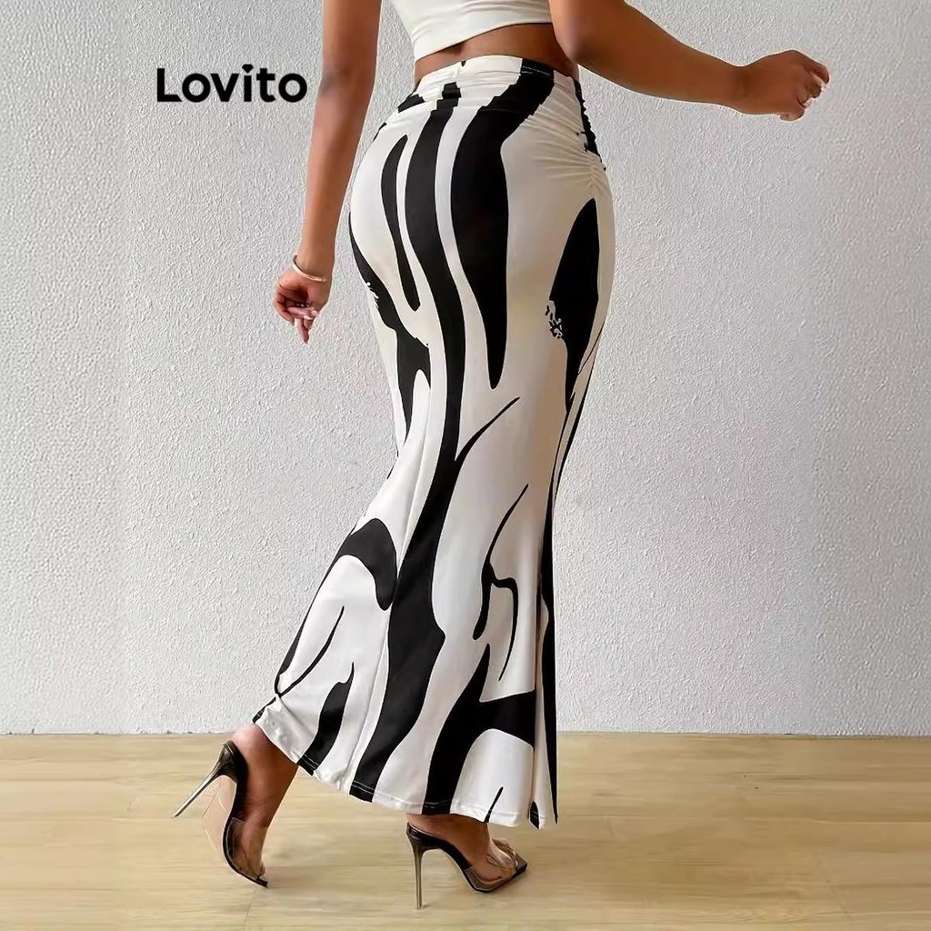 (LIVE STREAM SALE) Lovito Saia casual zebra franzida colorblock para mulheres LNL70061